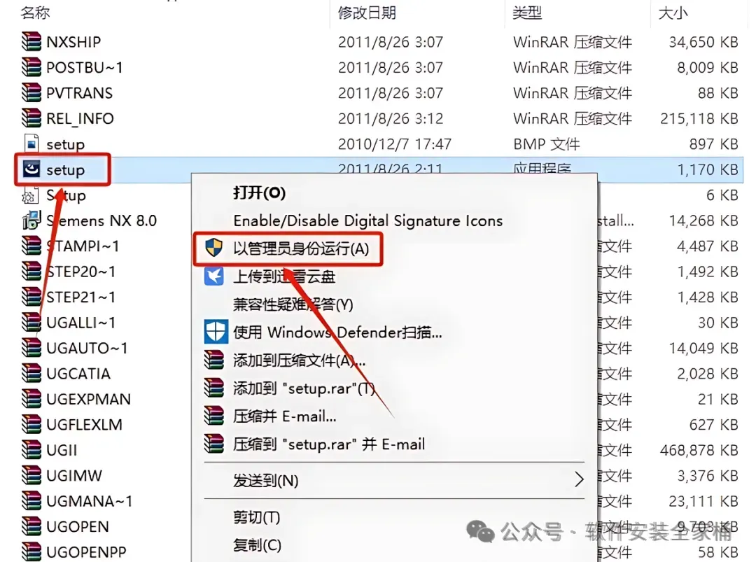 15.右击【setup】许可证文件,选择【以管理员身份运行】。