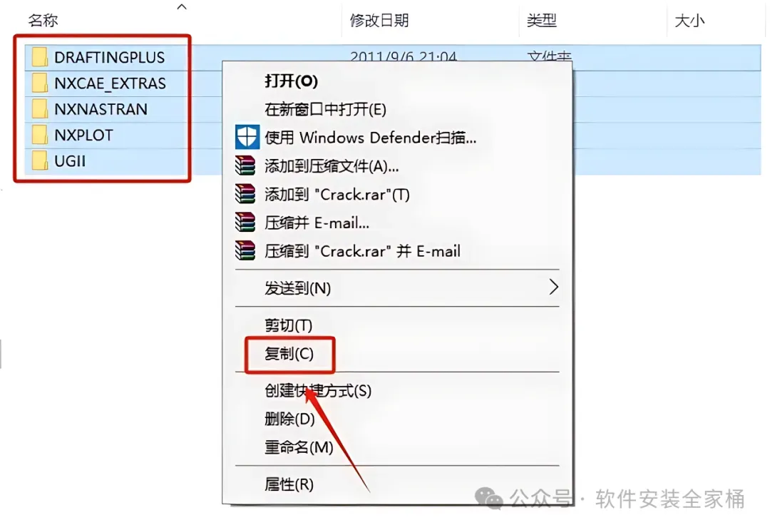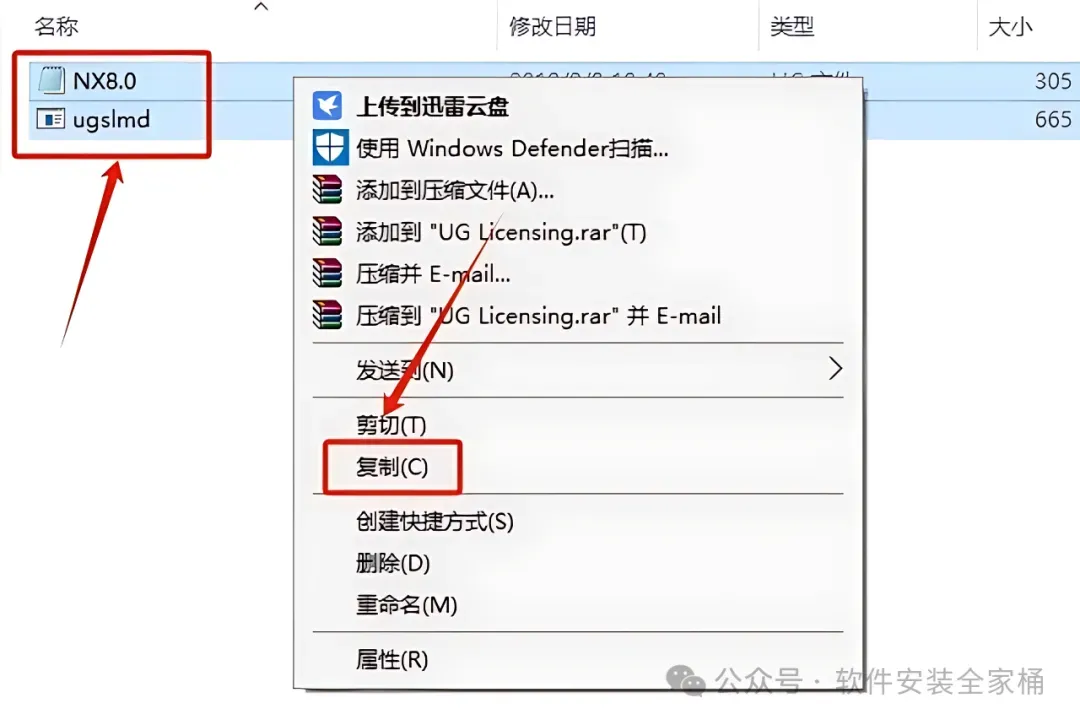 48.选中文件夹中的两个文件,鼠标右击选择【复制】,接下来需要找到UG许可证的安装路径(参考第18.19步骤)。