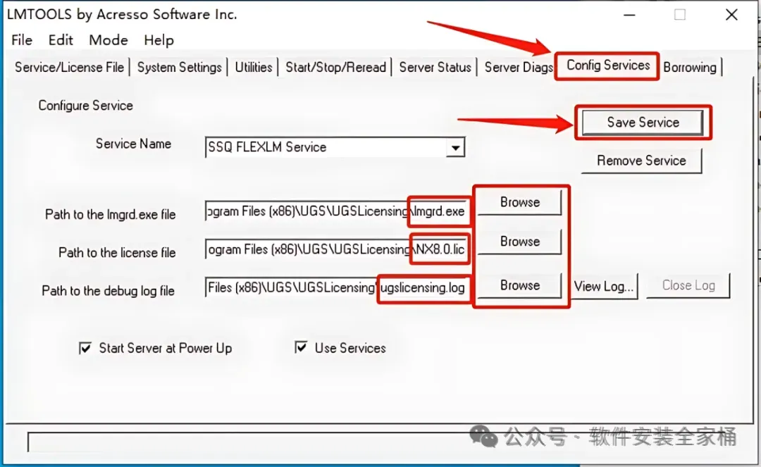 53.首先点击【Config Services】,然后点击【Browse】选择如下图所示的文件,最后点击【Save Services】。