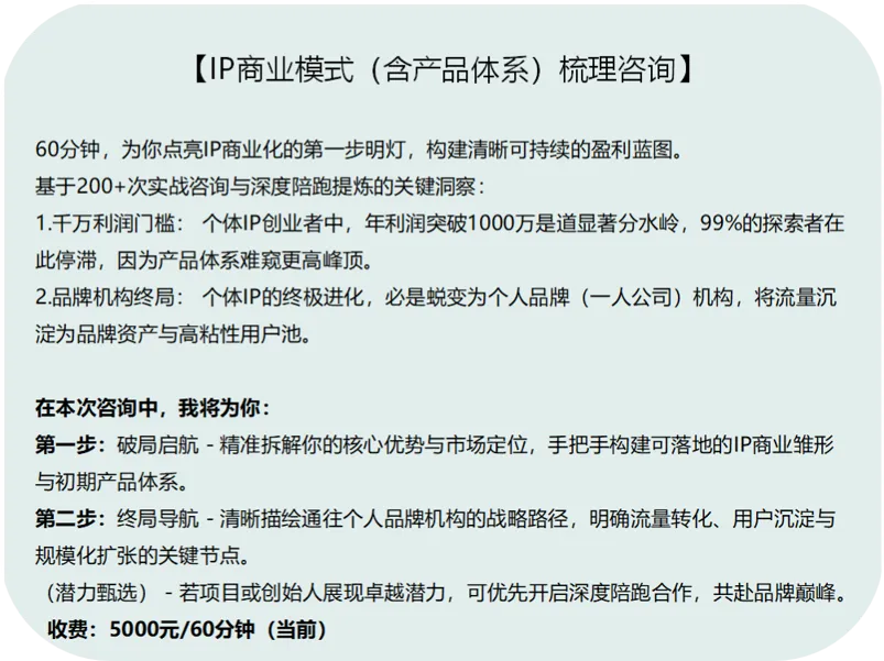 如果你也希望拥有一个一人公司或者开启IP之路,那就来链接我们。