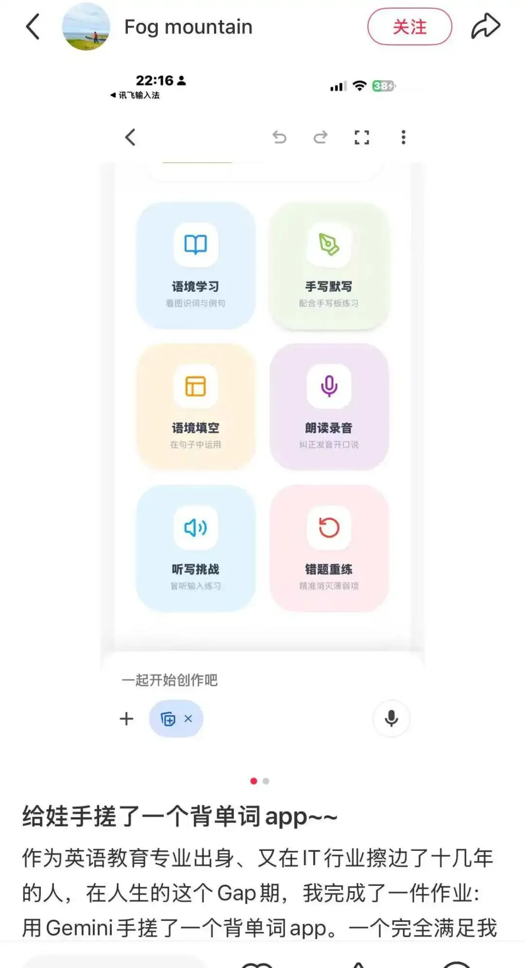 还有英语教育专业出身、又在IT行业擦边了十几年的家长,用Gemini手搓了一个背单词App。