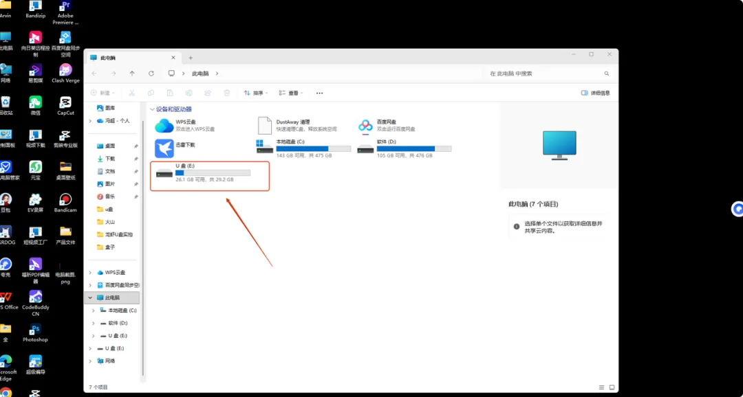 将 U 盘插入电脑,PC端找到“ U 盘” ,双击打开,进入小龙虾 AI 操作界面。