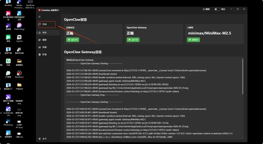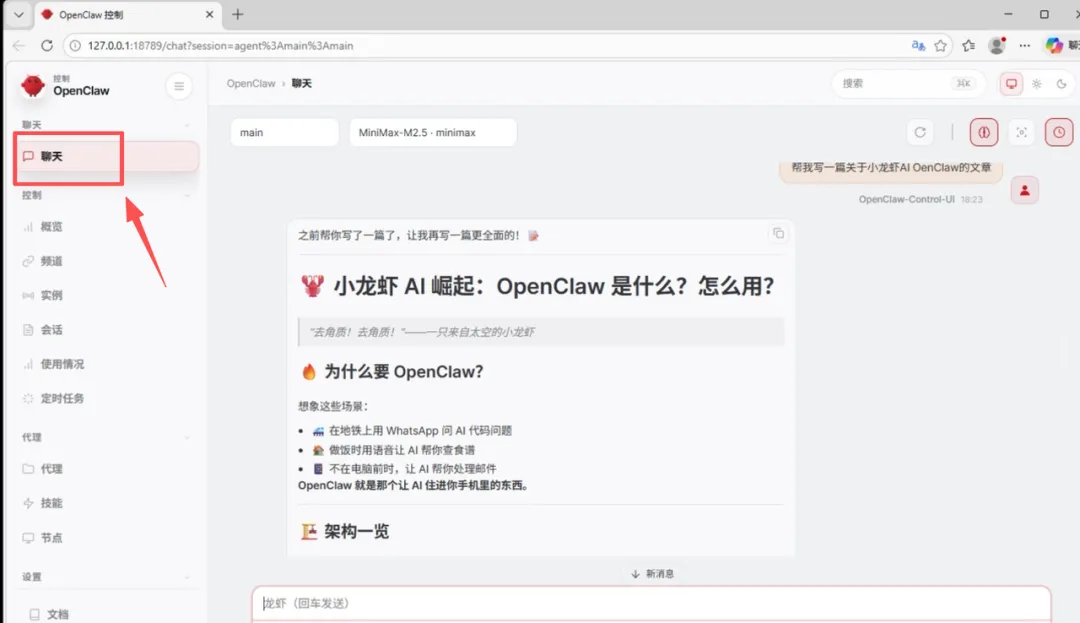 首次使用按指引完成模型配置,确认系统状态正常后,即可与小龙虾 AI OpenClaw 对话交互。