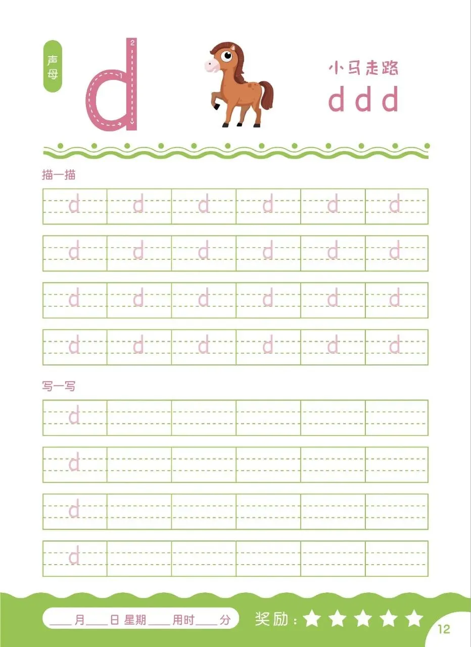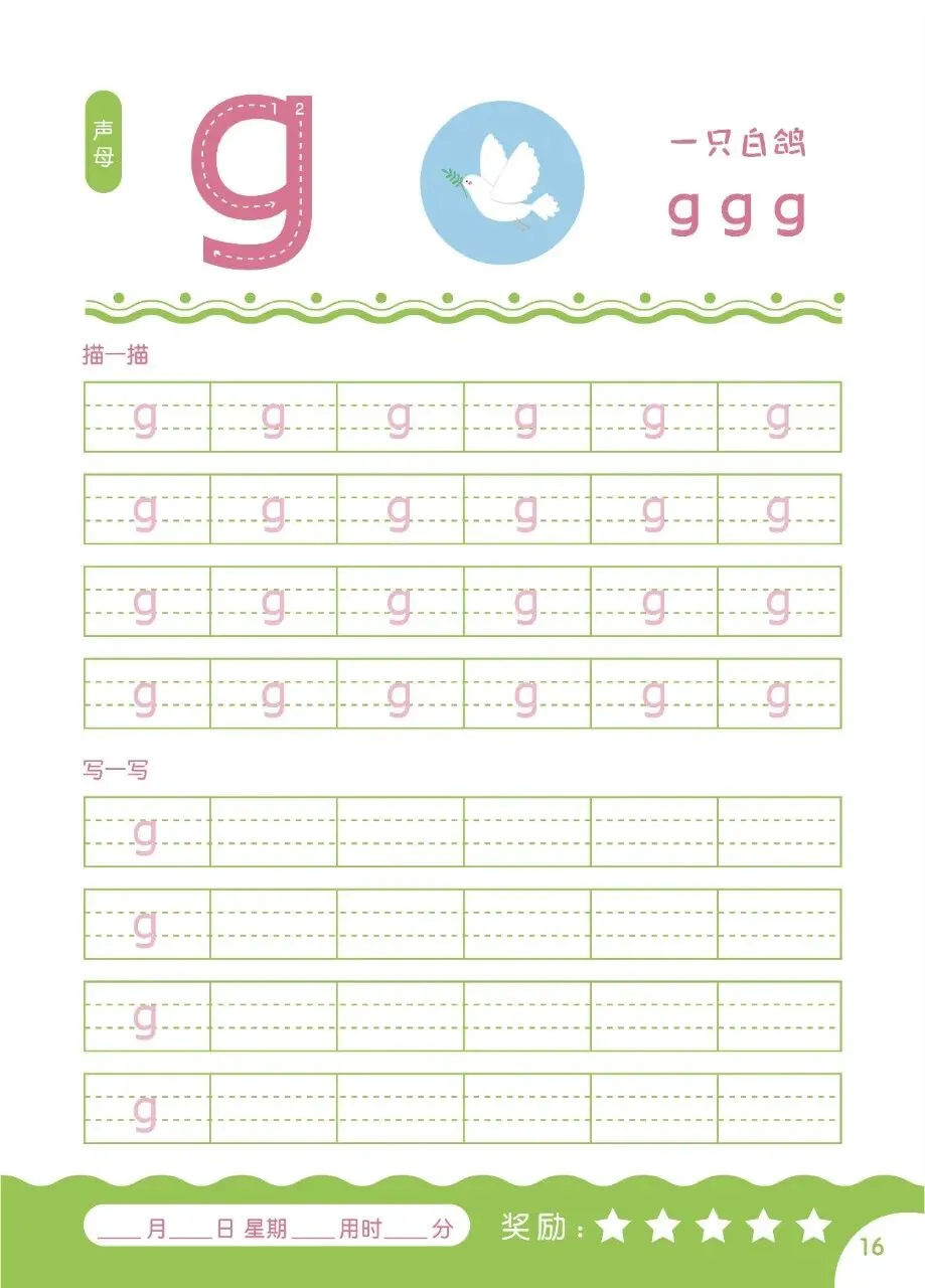 🌈声母、韵母按顺序排好,描红格式特标准,娃跟着写,笔顺不出错;