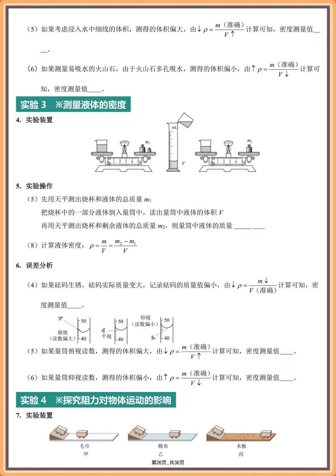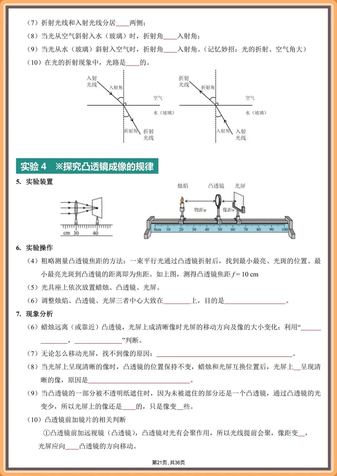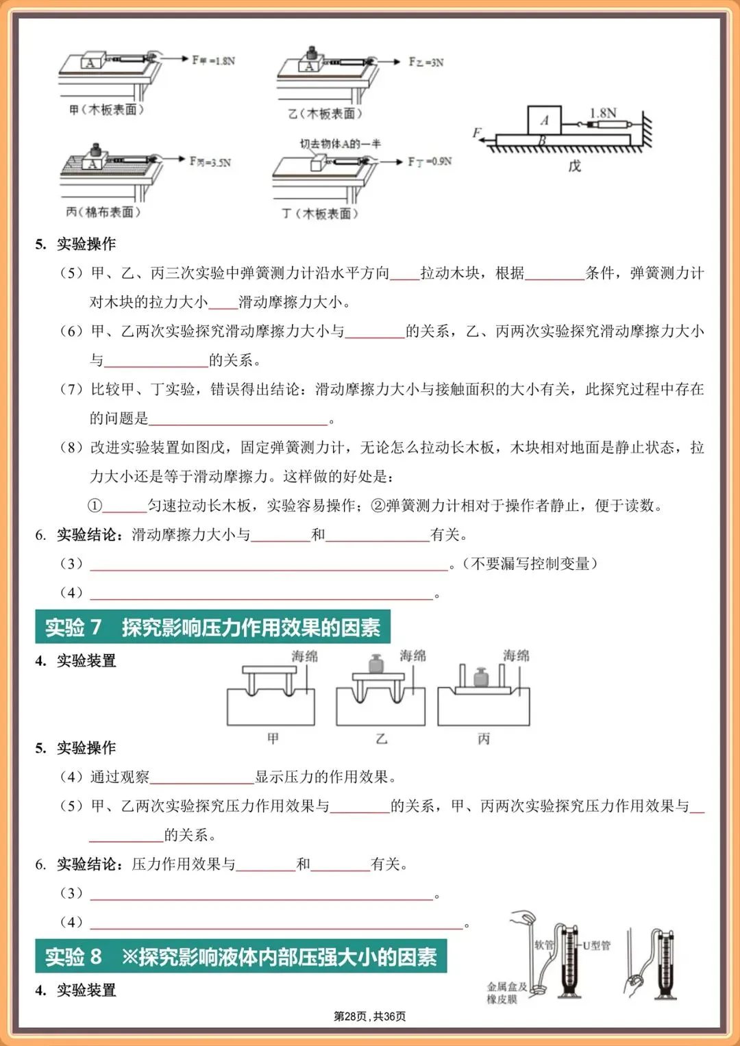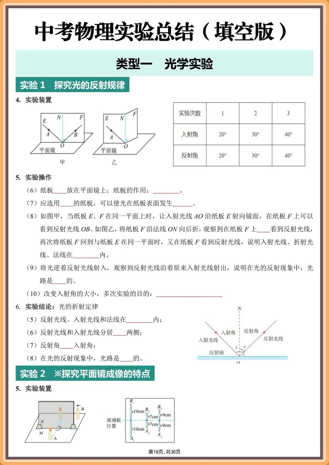 2026中考物理实验填空版汇总(背诵版+填空版),电子版可打印!