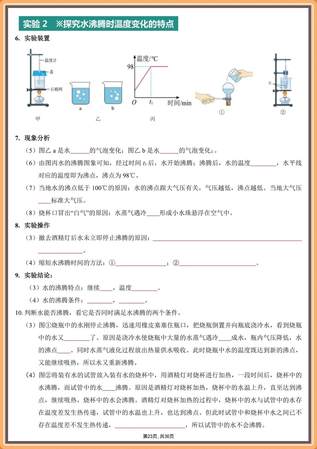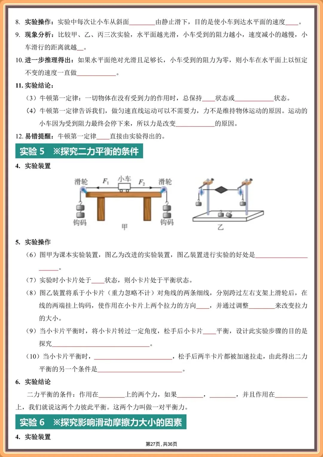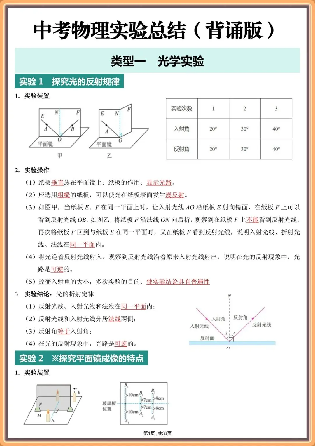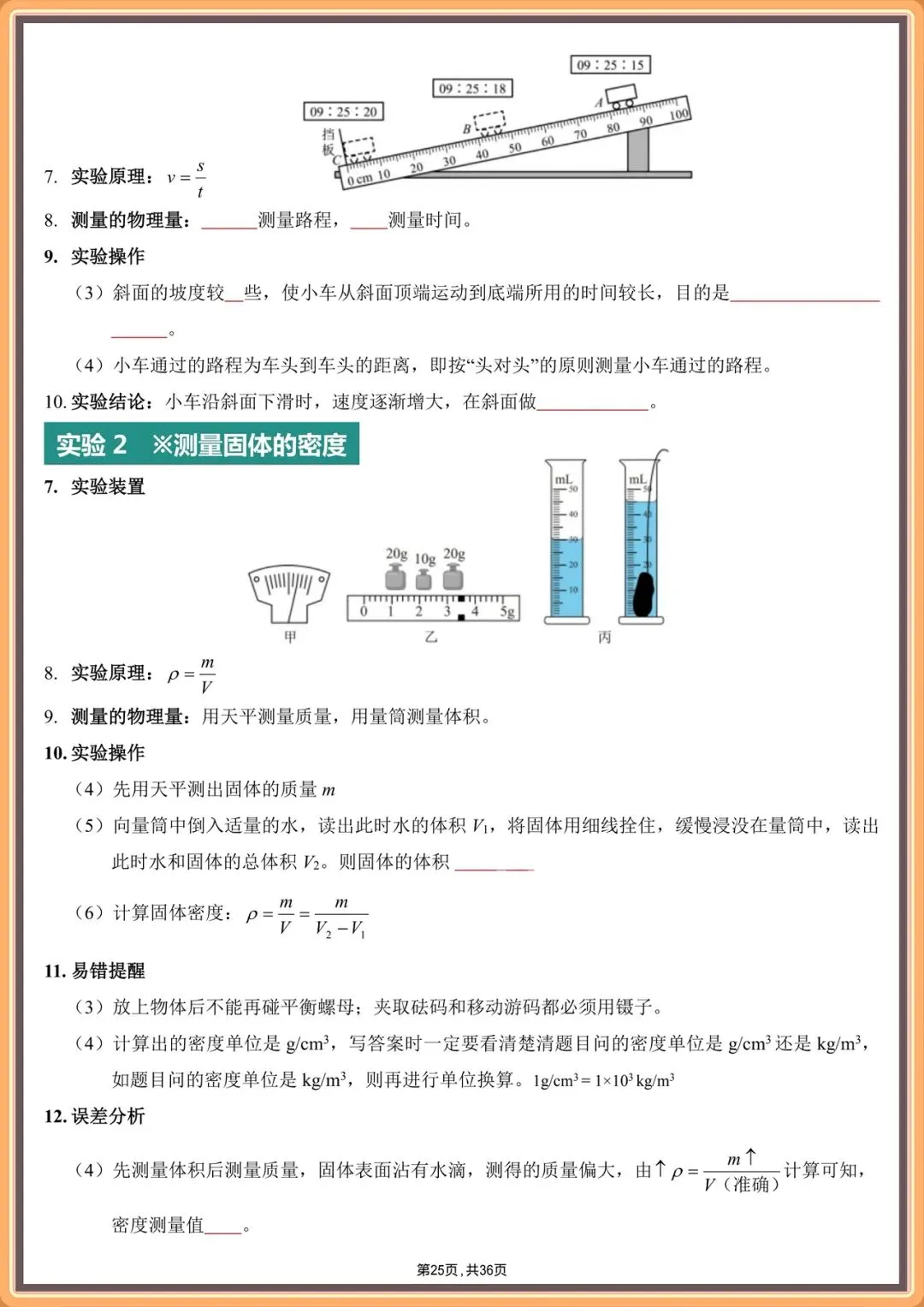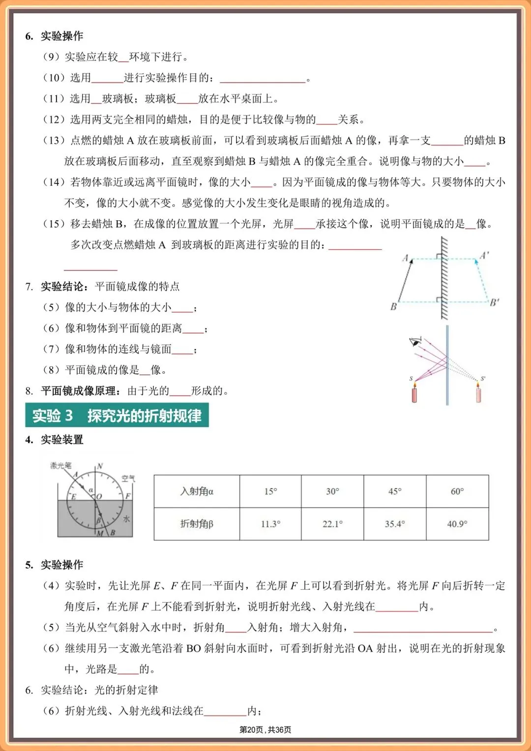 2026中考物理实验填空版汇总(背诵版+填空版),电子版可打印!