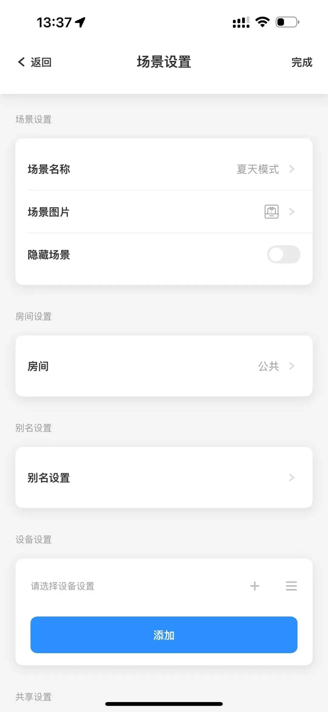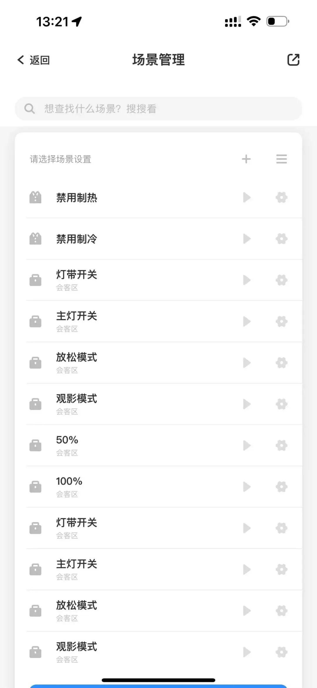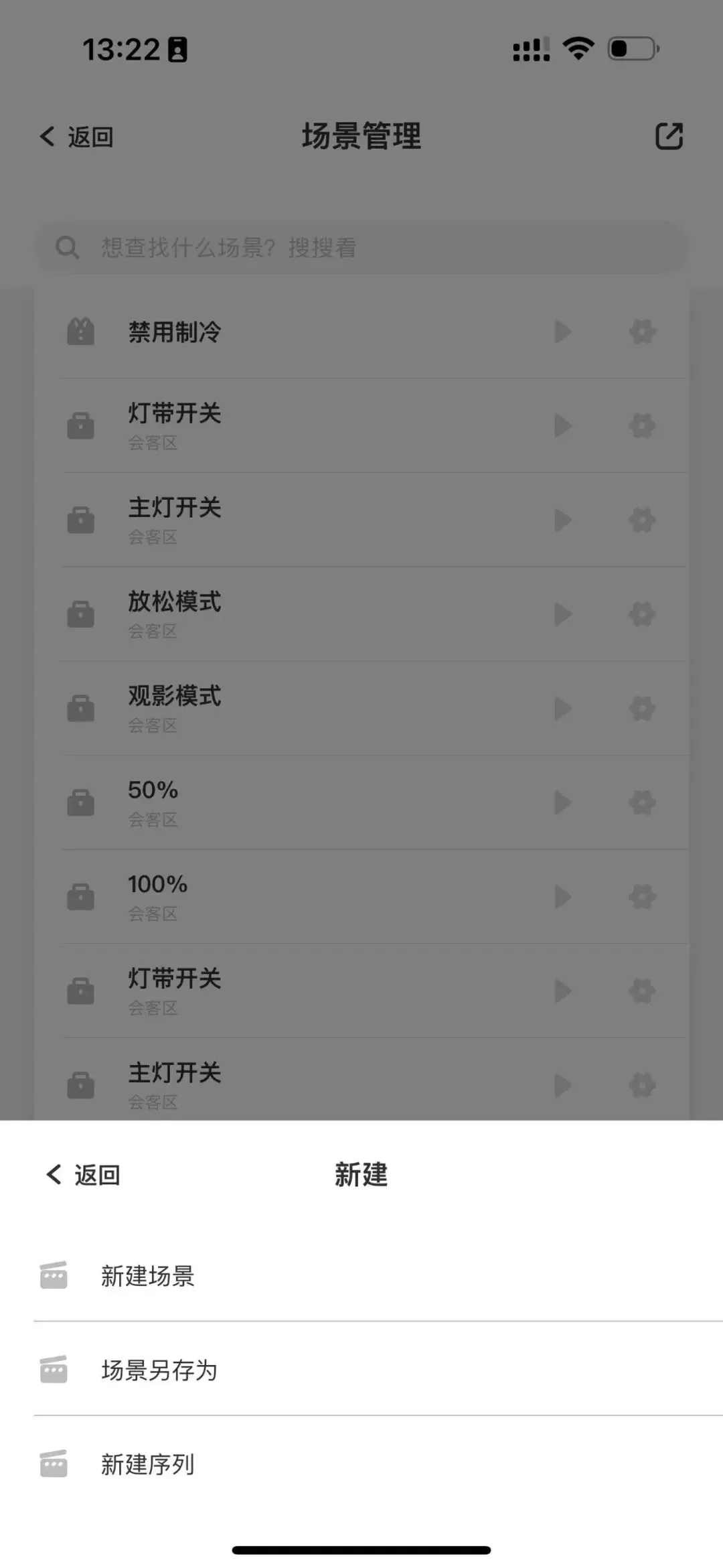 长按场景名称可进入编辑界面,修改设备动作或删除场景。