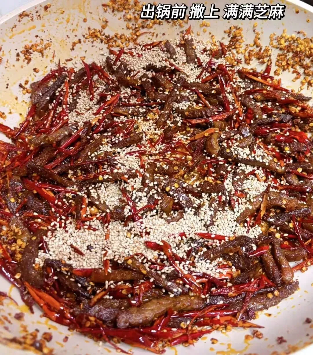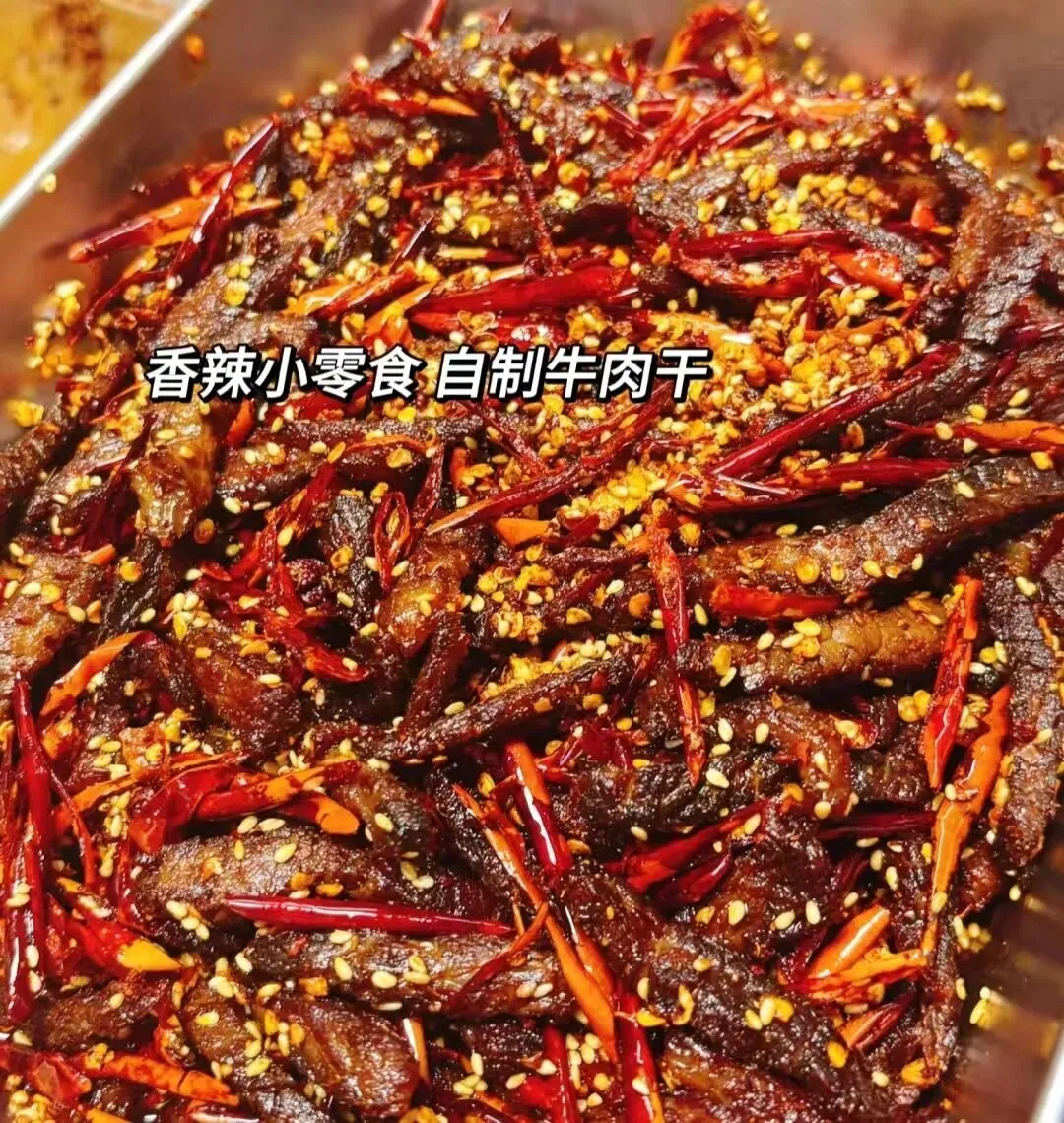自制零食香辣牛肉干就做好啦,色香味俱全,大人小孩都喜欢,追剧的时候来上一碟,简直太香了,自己制作美食,满满的成就感,快快安排给家里人尝尝吧!