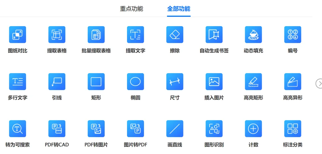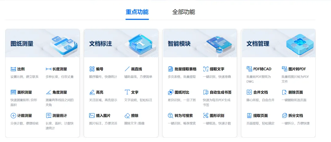 本次分享的内容为pdf快速看图,官方介绍功能50项(见上图1-3),重点功能4大类24项(见下图)。