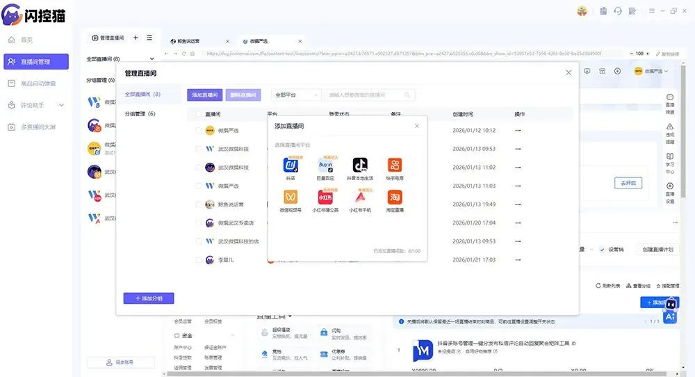 第一个要看的,不是功能多不多,而是它能不能帮你“省人”。直播是个重人力的活儿,尤其是矩阵直播。你想想,一个中控要盯着屏幕、看评论、手动弹商品、回复问题,精神高度紧张,一场下来累个半死,而且只能盯一个直播间。如果工具只是把“手动”变成“半自动”,那价值就有限了。真正的省人,是让一个中控能同时管理多个直播间。这需要工具能实现多平台、多账号的集中管控。比如,你同时在做抖音、视频号和小红书,传统的做法是得开三个后台,来回切换,眼花缭乱。而像闪控猫这样的聚合中控,就能在一个大屏上,把所有直播间的画面、评论区、核心数据都集中展示。你一个人坐在电脑前,就能全局掌控,哪个直播间流量有波动,哪个评论区有关键问题,一目了然。这就像从“单兵作战”升级成了“指挥中心”,人力成本自然就降下来了。