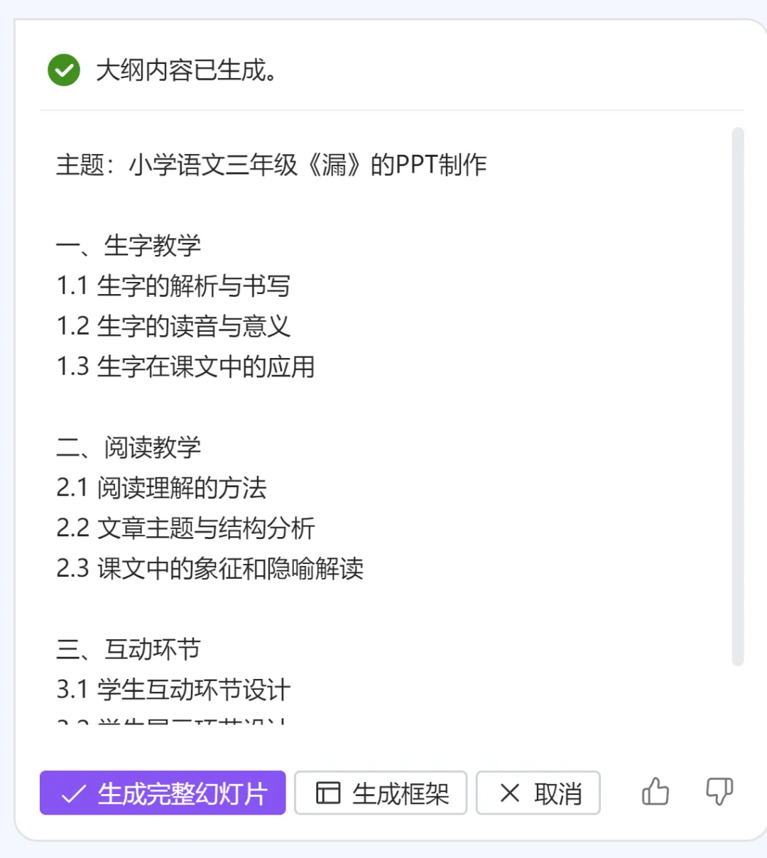 它给我们生成了一个大纲: