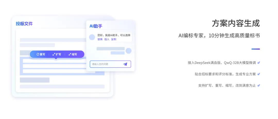 招投标的核心竞争力,最终体现在方案质量与合规响应的精准度上。AI 工具的价值,在于把重复性、易出错的基础工作标准化、自动化,让团队将精力集中在方案优化、需求理解、竞争策略等更具价值的工作上。