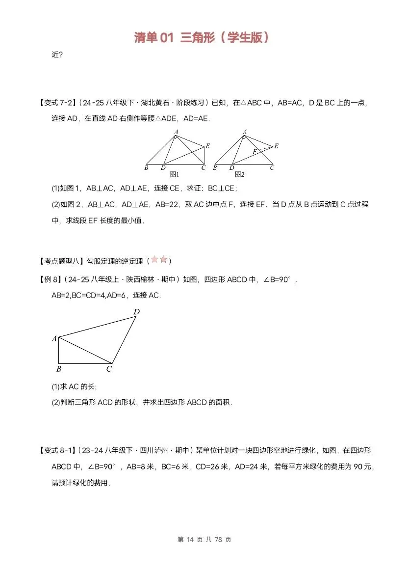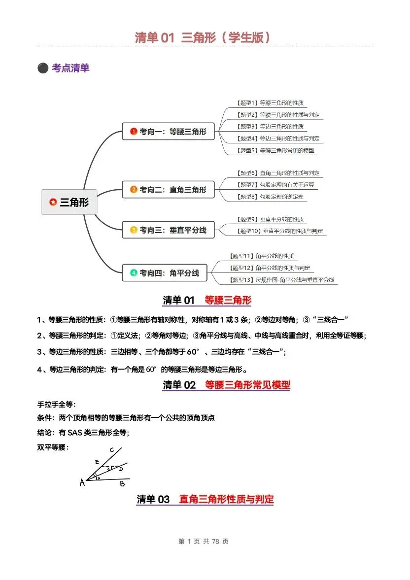 今日分享2026新八年级下册北师版数学期中复习:三角形·知识清单(含答案)完整电子版可打印!所有资料均为高清电子版,排版规整适配打印,不用费心整理,直接打印就能用。精准击破学习难点,帮孩子夯实基础、吃透考点,稳步提升学习效率!