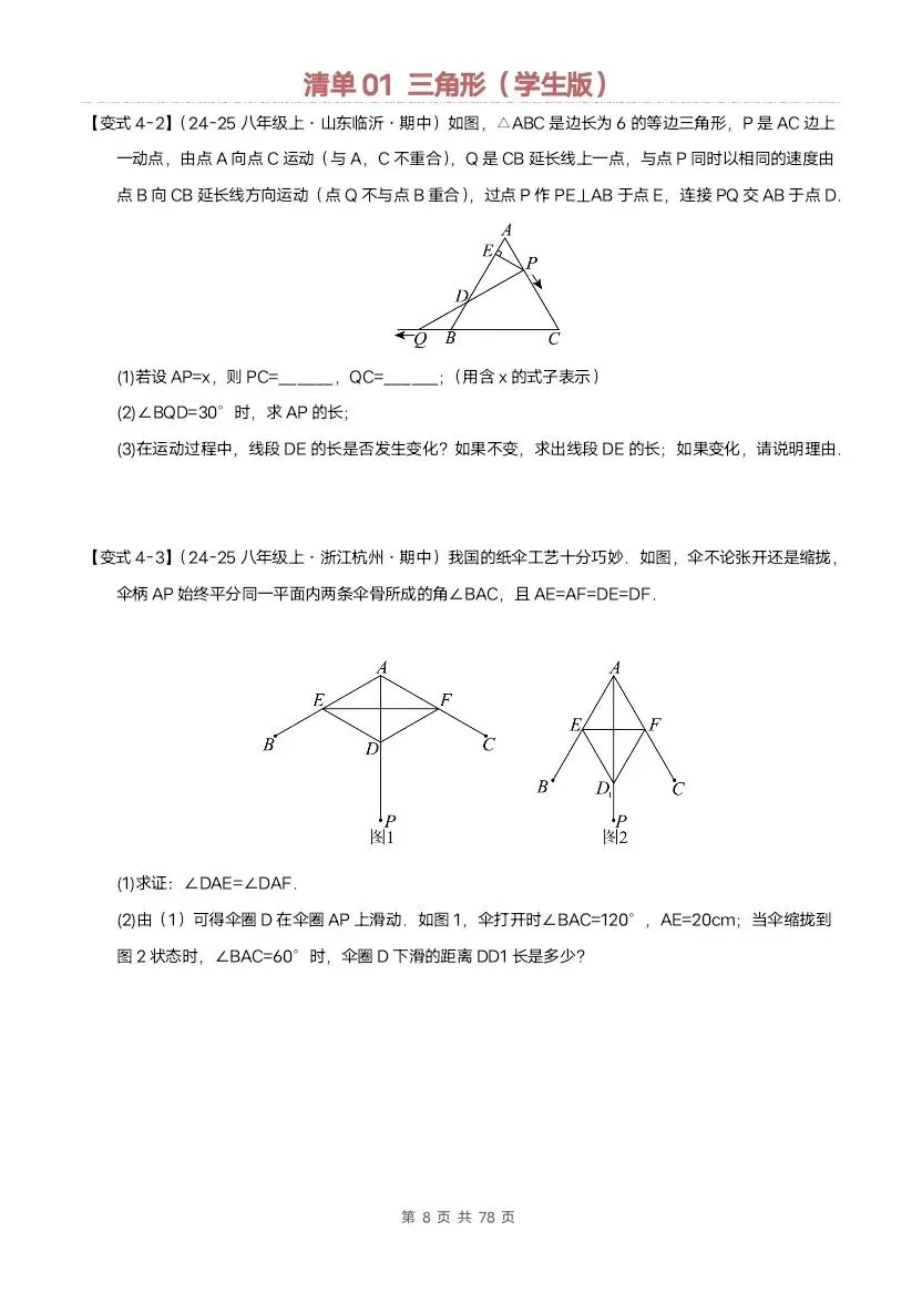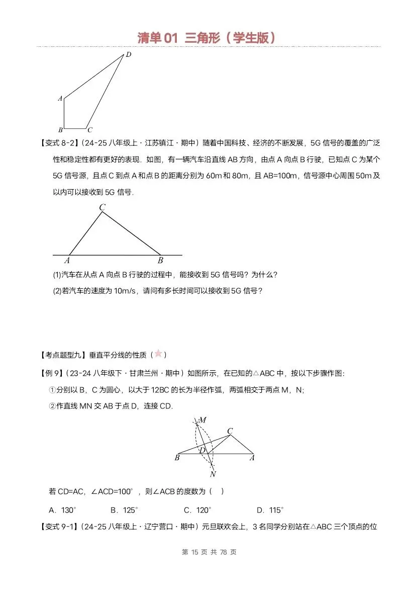 2026新八年级下册北师版数学期中复习:三角形·知识清单(含答案)完整可打印