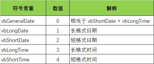 NamedFormat 是一个数字形式表示的日期/时间格式,是 FormatDateTime 函数的可选参数,如果没有指定,则其值为0。NamedFormat 取值如下表所示: