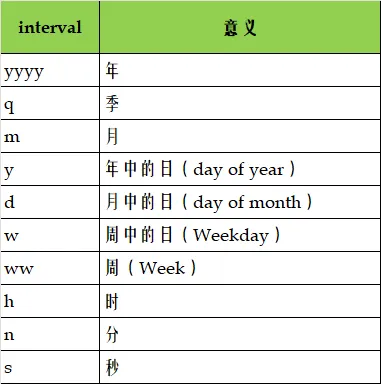其中,interval 可以是年、月、日,也可以是时、分、秒。number 可以是正数,表示未来的某个日期/时间,也可以是负数,表示过去的某个日期/时间。