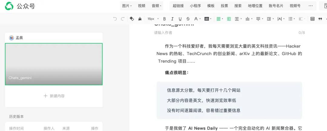 整个流程是我自己写的插件,这种插件最大的问题是要长期维护,发布平台页面有调整,这个插件就要跟着调整,要不就废了,完全依赖于平台页面。