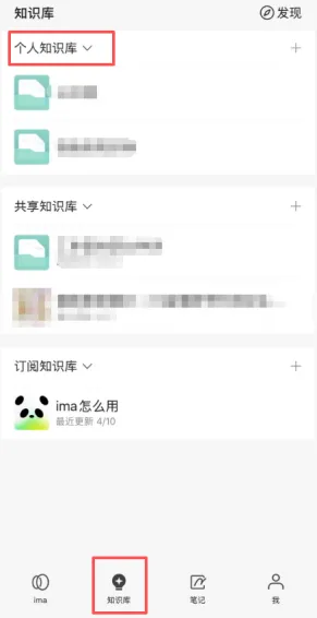 1. 进入个人知识库:打开IMA,在“知识库”页选择需要存储文件的个人知识库