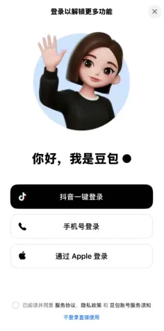 1. 打开豆包APP,在登录页选择「抖音一键登录」「手机号登录」等方式完成账号登录,进入APP主界面。