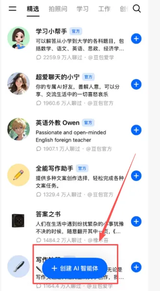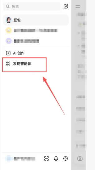 2. 点击APP左上角的两条横线菜单按钮,在展开的侧边栏中,找到并点击“发现智能体”选项,进入智能体广场页面。