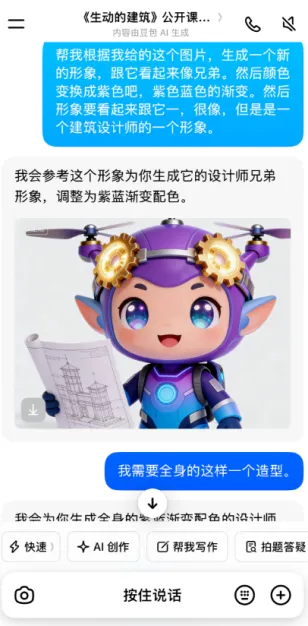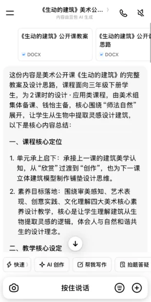 课前,教师运用豆包 APP 创建专属美术教学智能体,设定建筑师角色,快速完成教案梳理与课程设计;