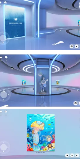 课后,将学生作品导入 AI 虚拟展厅进行展示,让每一位孩子的创作成果得到呈现,提升学习成就感。