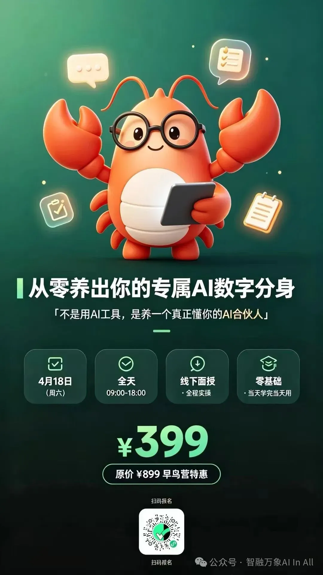 这正是我们做AI超级个体打造的初心,我们推出的AI 龙虾养育营不教你怎么用AI工具,我们教你怎么“养”一个真正懂你、为你而生的AI数字分身——你的“AI超级助手”。