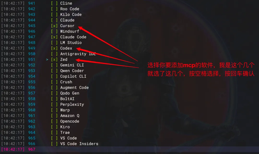 Select global targets to install: Cursor, Claude Code, Codex, Zed