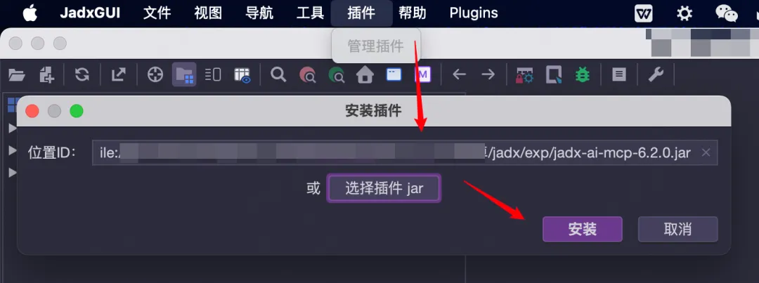 导入方式安装(你也可以直接在设置中的插件管理进行安装):jadx-mcp-server.jar包