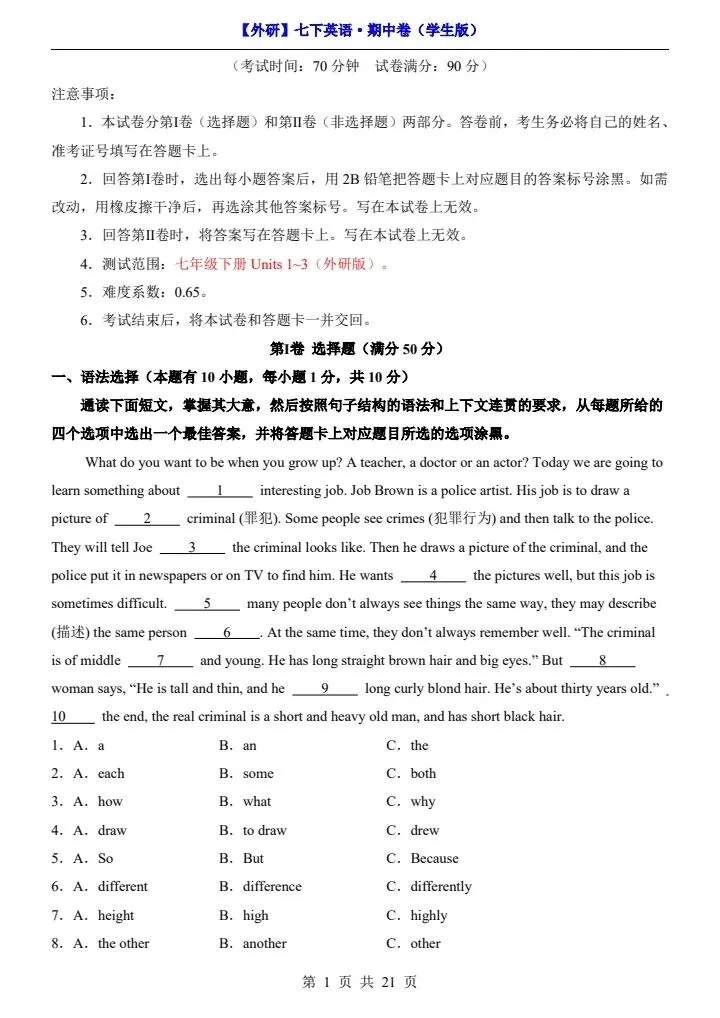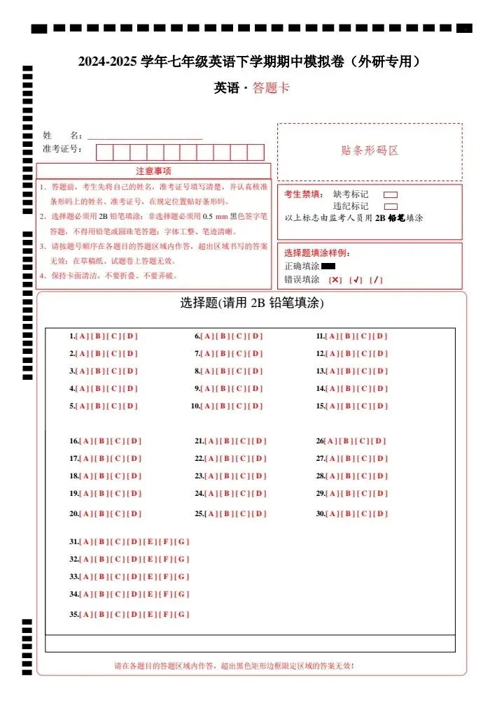 今日分享26新七下外研版英语期中试卷(答案+答题卡)完整电子版可打印!高清可打印,每日轻量练习,拒绝无效刷题,用系统化资料筑牢学科基础,让假期成为提升的黄金期,开学轻松领跑。