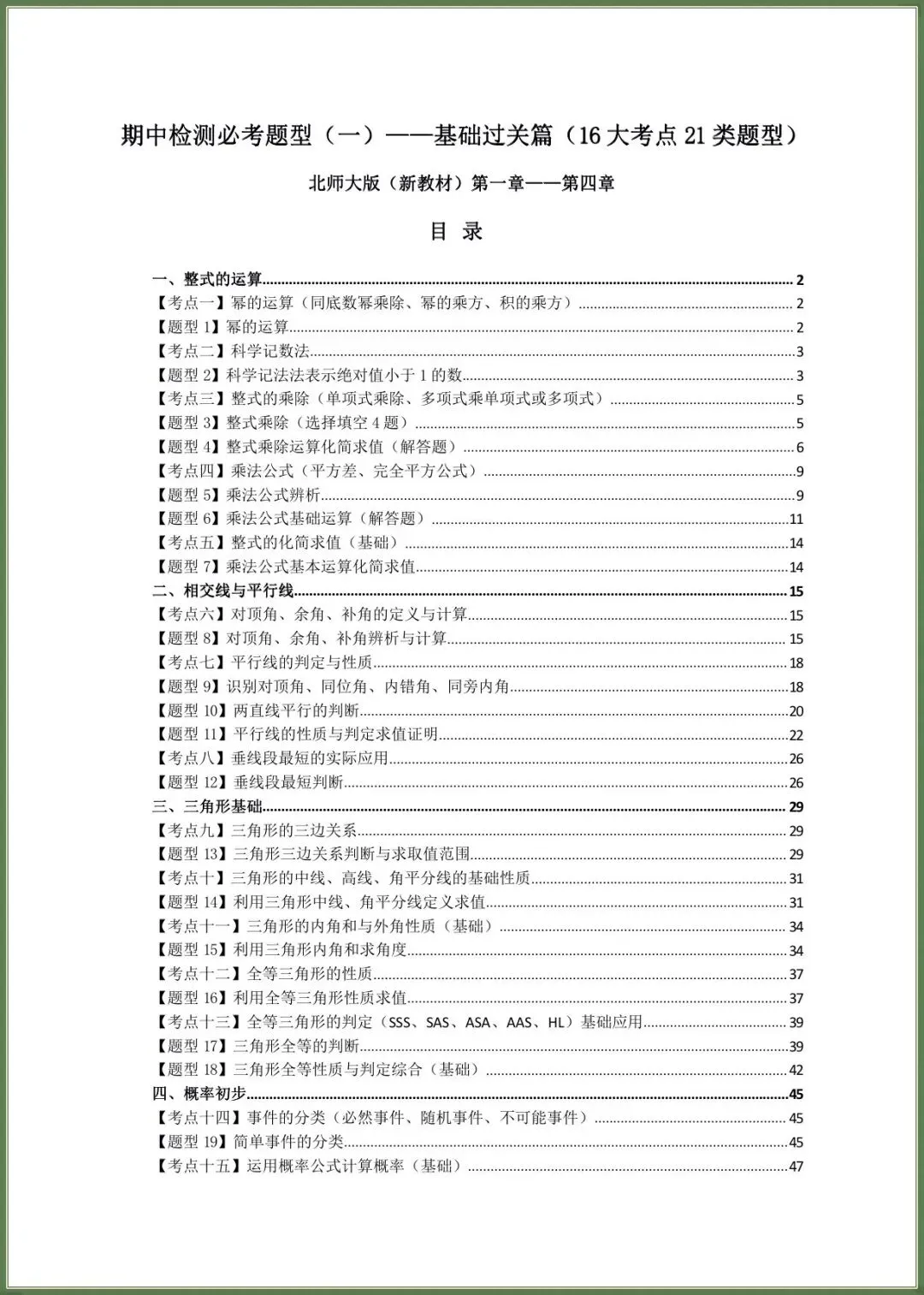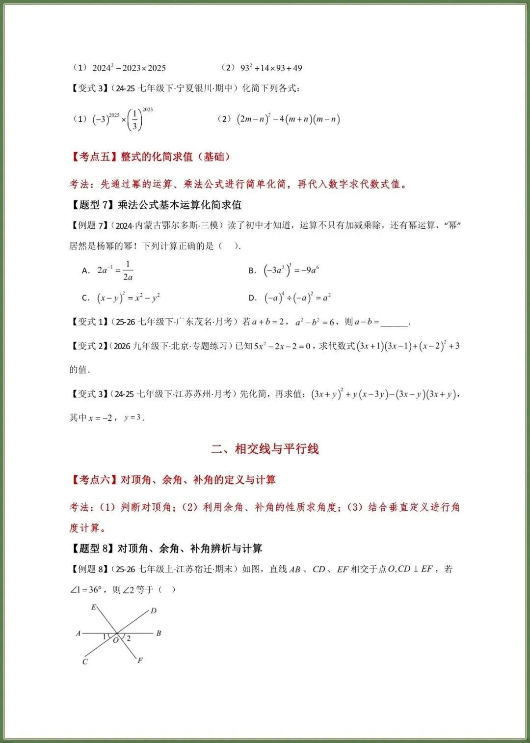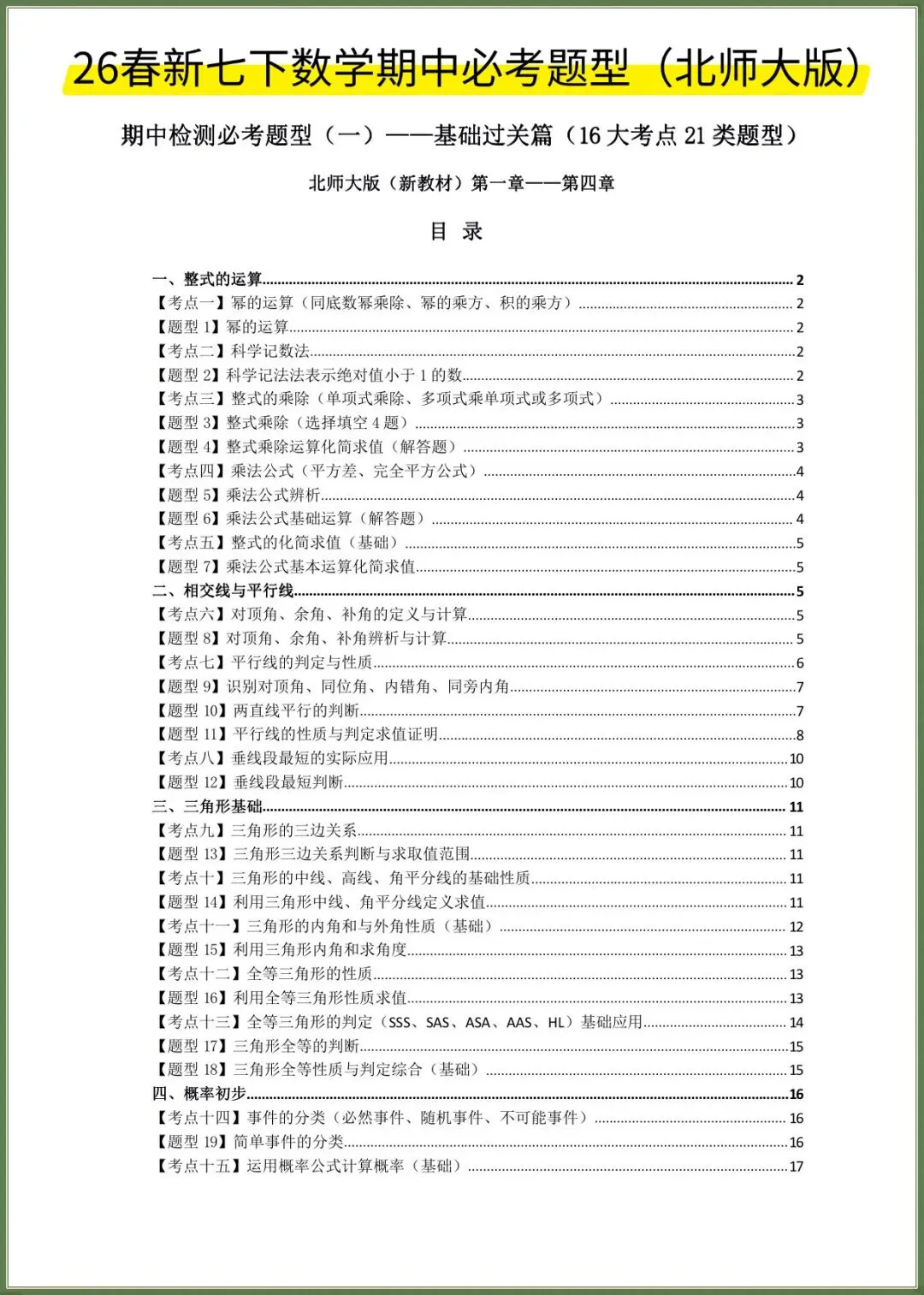 🌟2026春新北师大版七年级下册数学期中复习必考题型专练(16大知识考点21类题型)附答案,完整电子版可下载打印