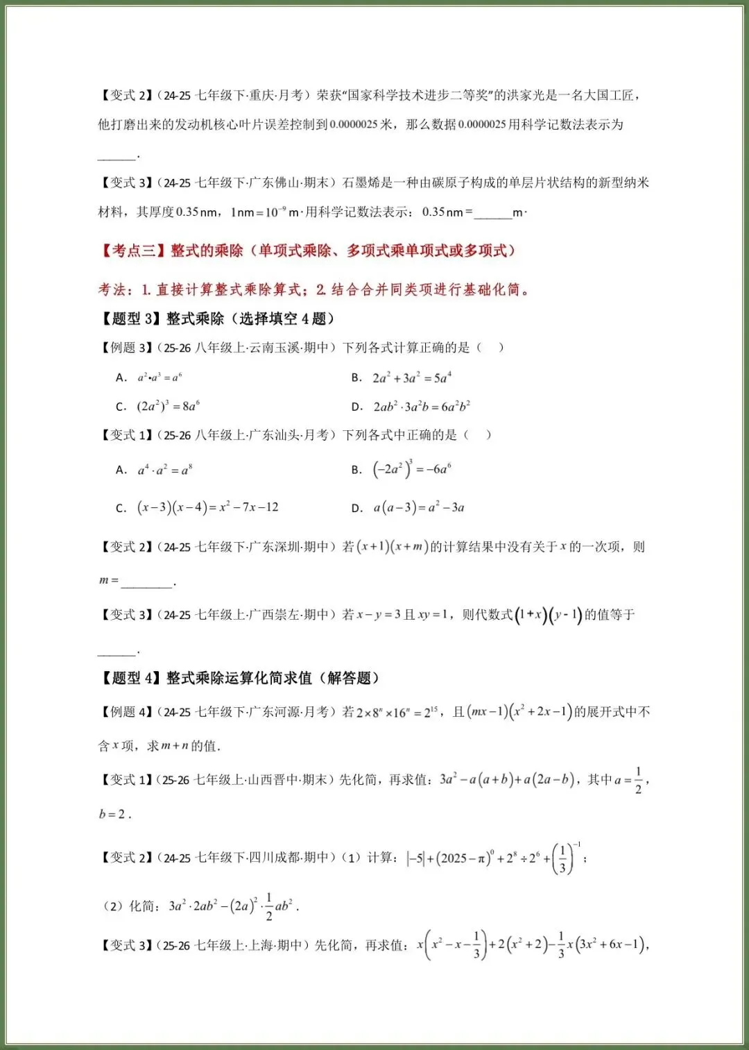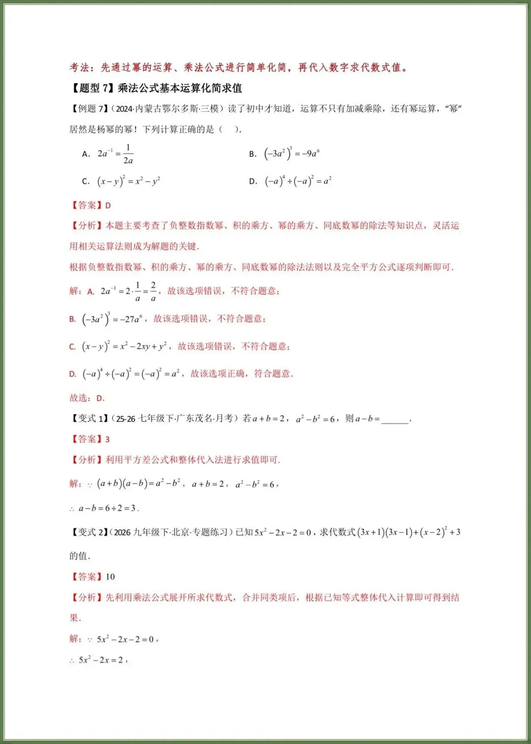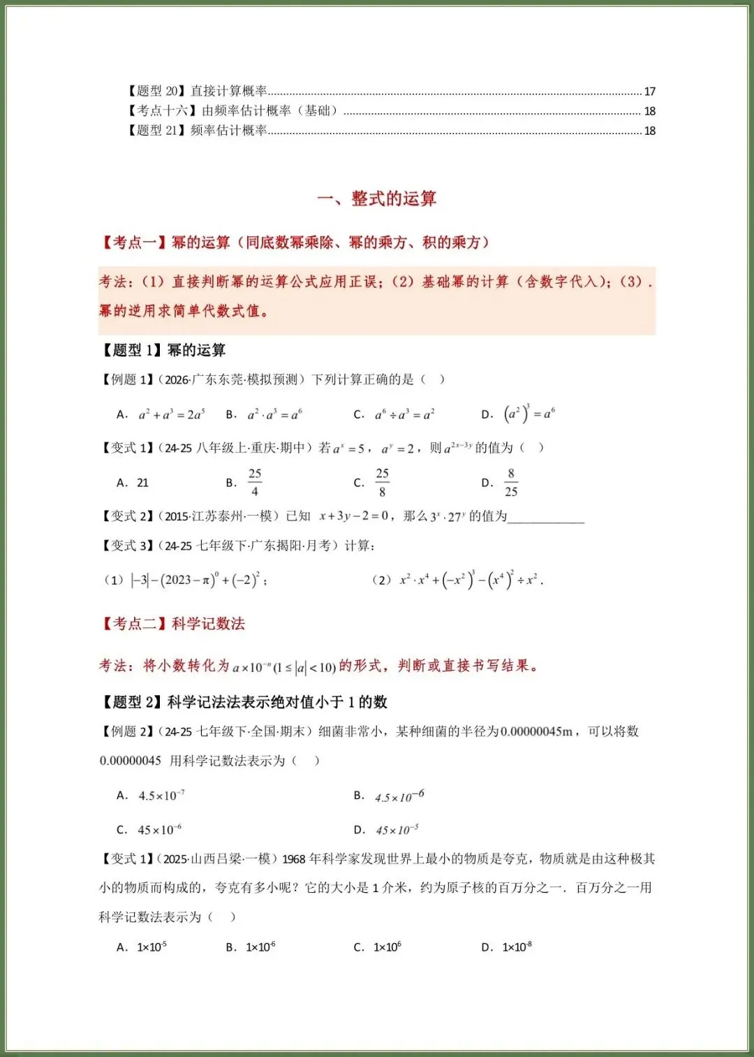 🌟2026春新北师大版七年级下册数学期中复习必考题型专练(16大知识考点21类题型)附答案,完整电子版可下载打印
