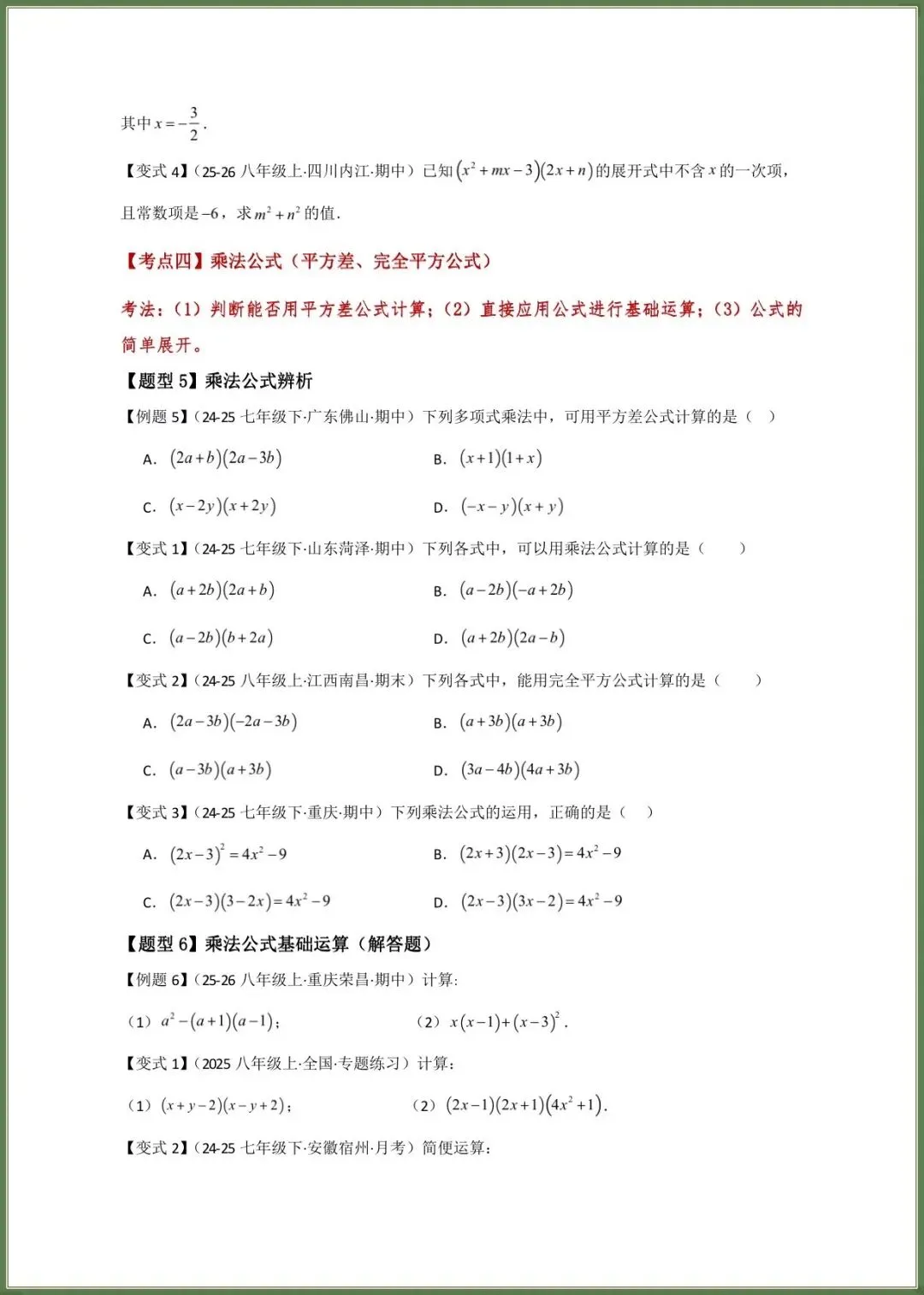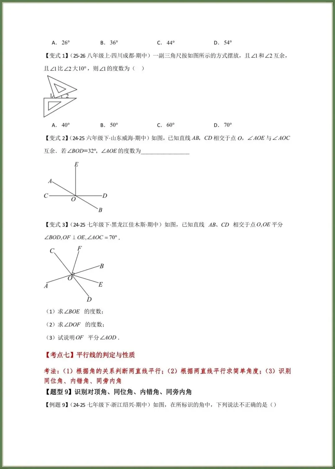 【期中备考】2026春新教材北师大版七年级下册数学期中复习必考题型专练(16大知识考点21类题型)附答案,完整可下载打印