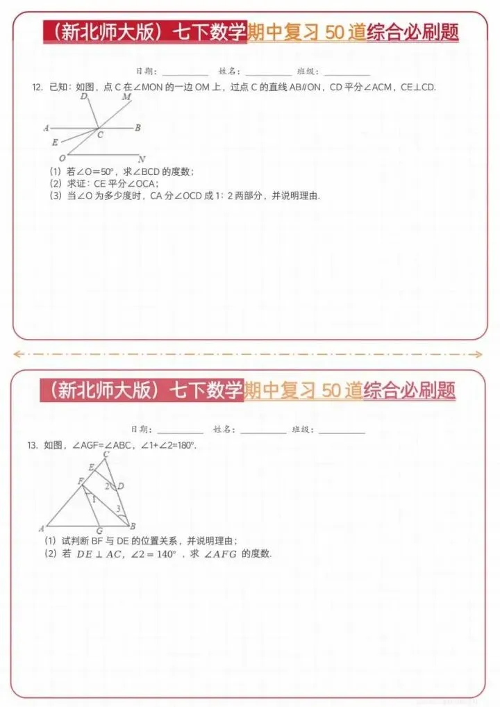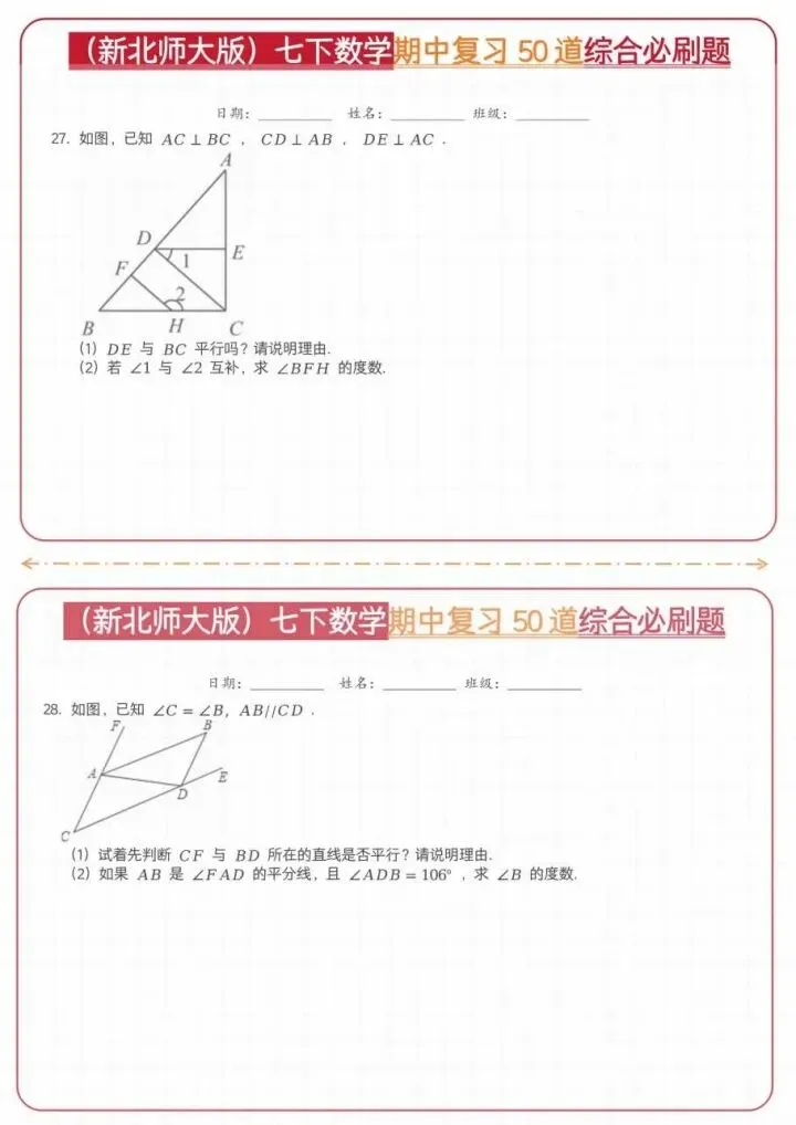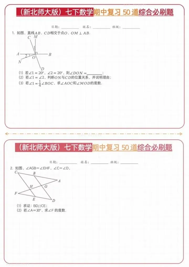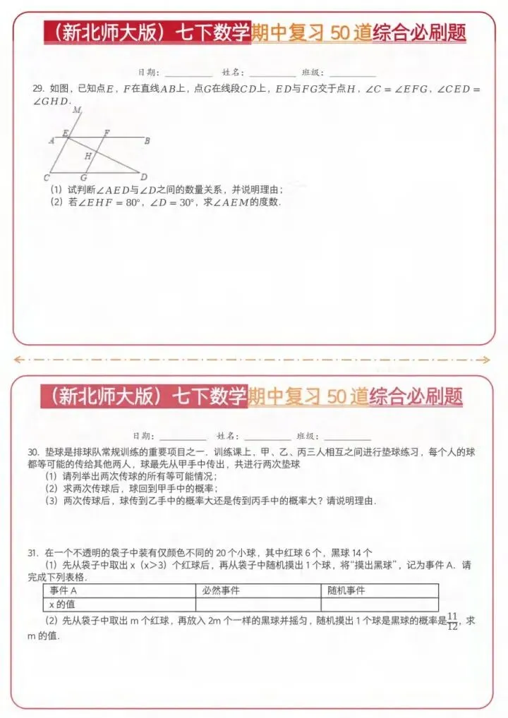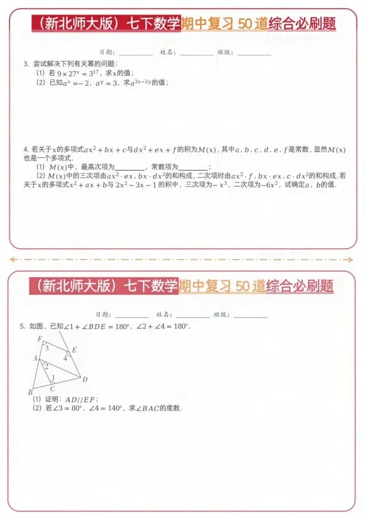 今日分享26新七下数学北师期中50道综合题(完整电子版可打印)!高清可打印,每日轻量练习,拒绝无效刷题,用系统化资料筑牢学科基础,让假期成为提升的黄金期,开学轻松领跑。