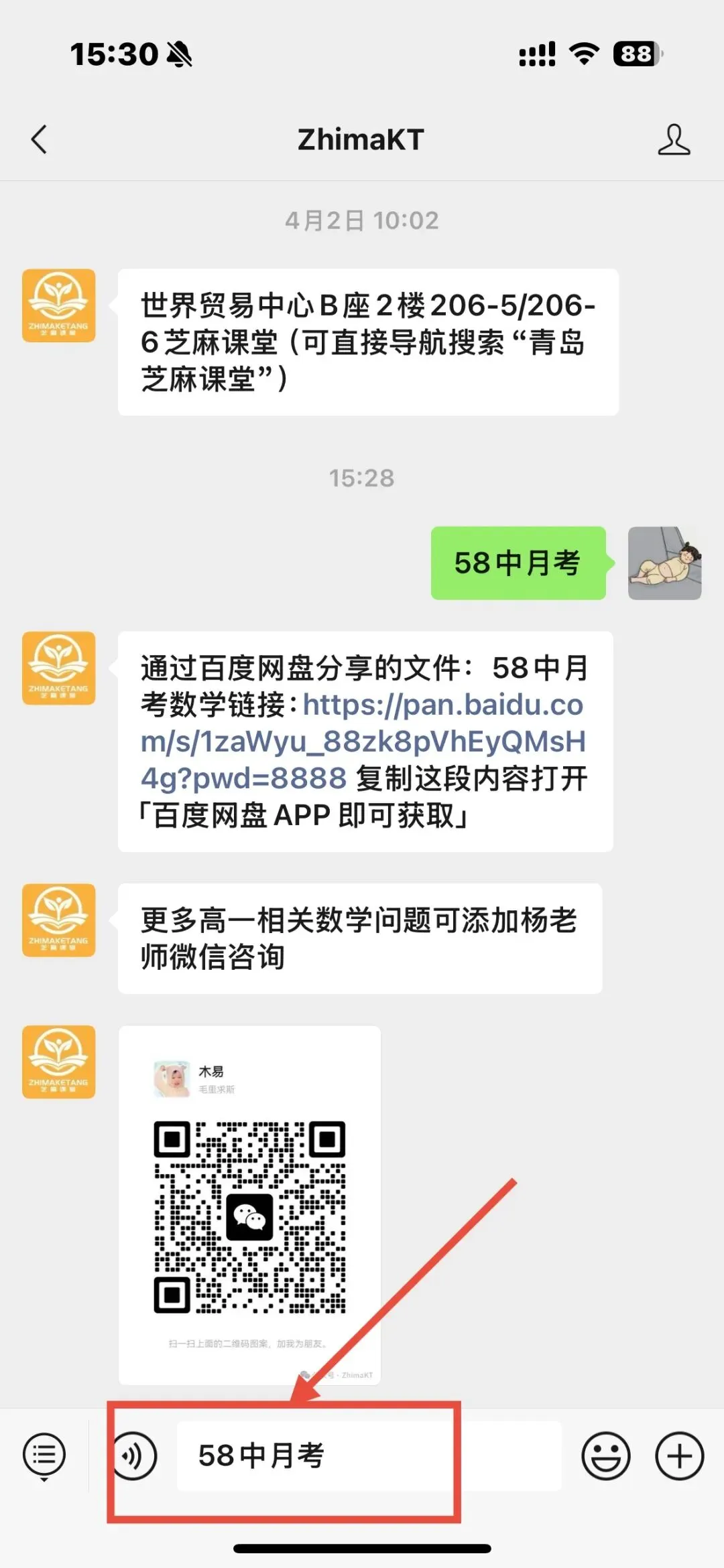 2026青岛58中数学高一下月考试题,电子版试题和答案免费领取 2026青岛58中 高一下月考 数学试题 电子版试题及答案【获取方式】 第一步:点击下面公众号卡片关注 第二步:在ZhimaKT公众号后台回复:58中月考(如图可直接复制) 即可获取电子版试题及答案