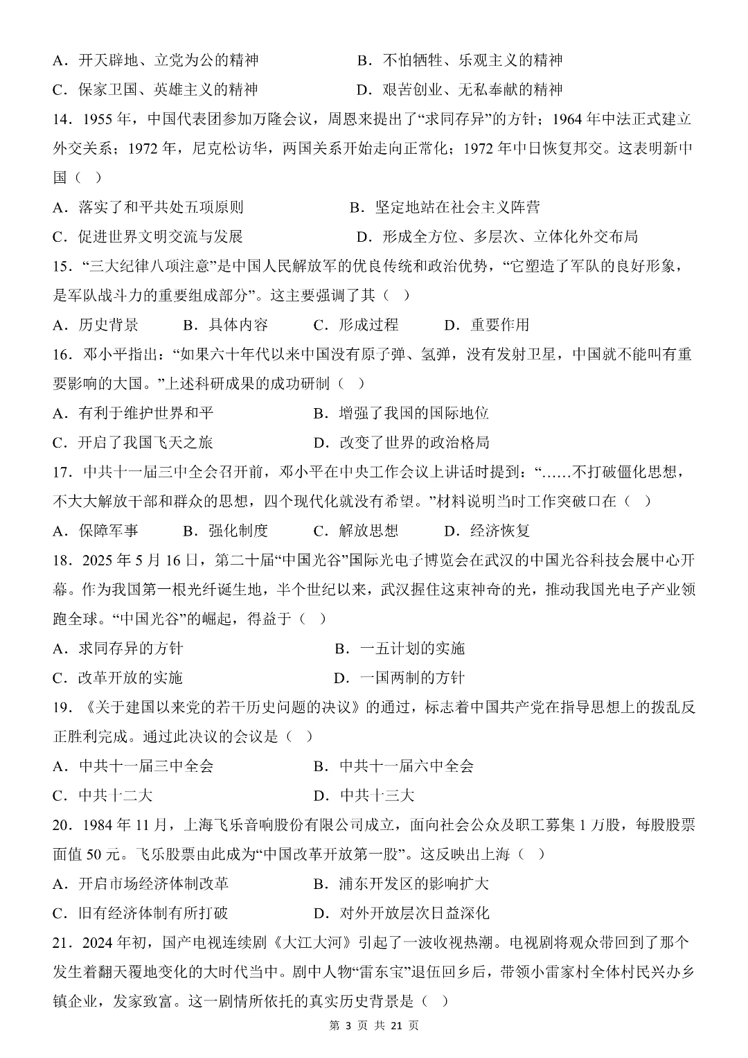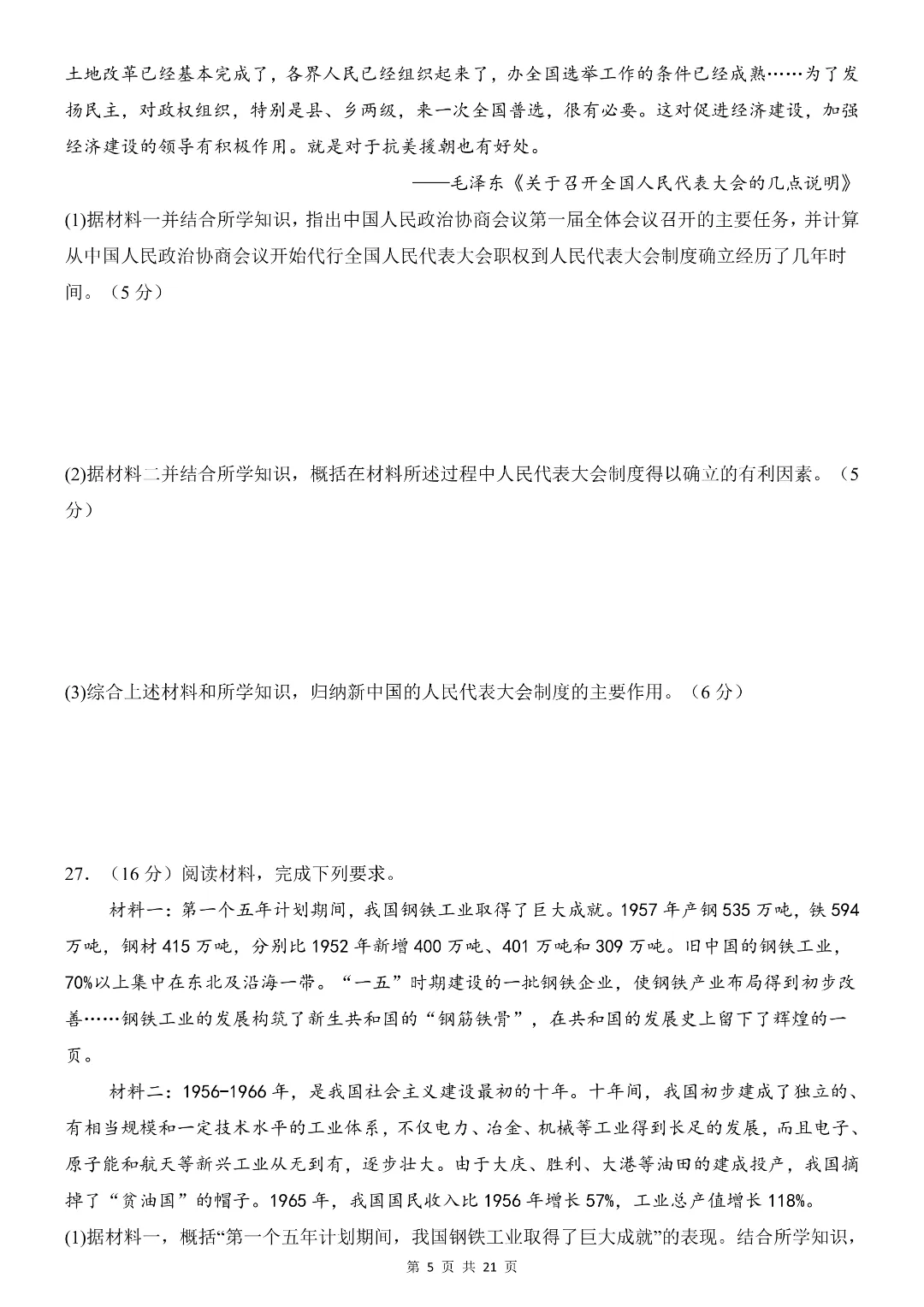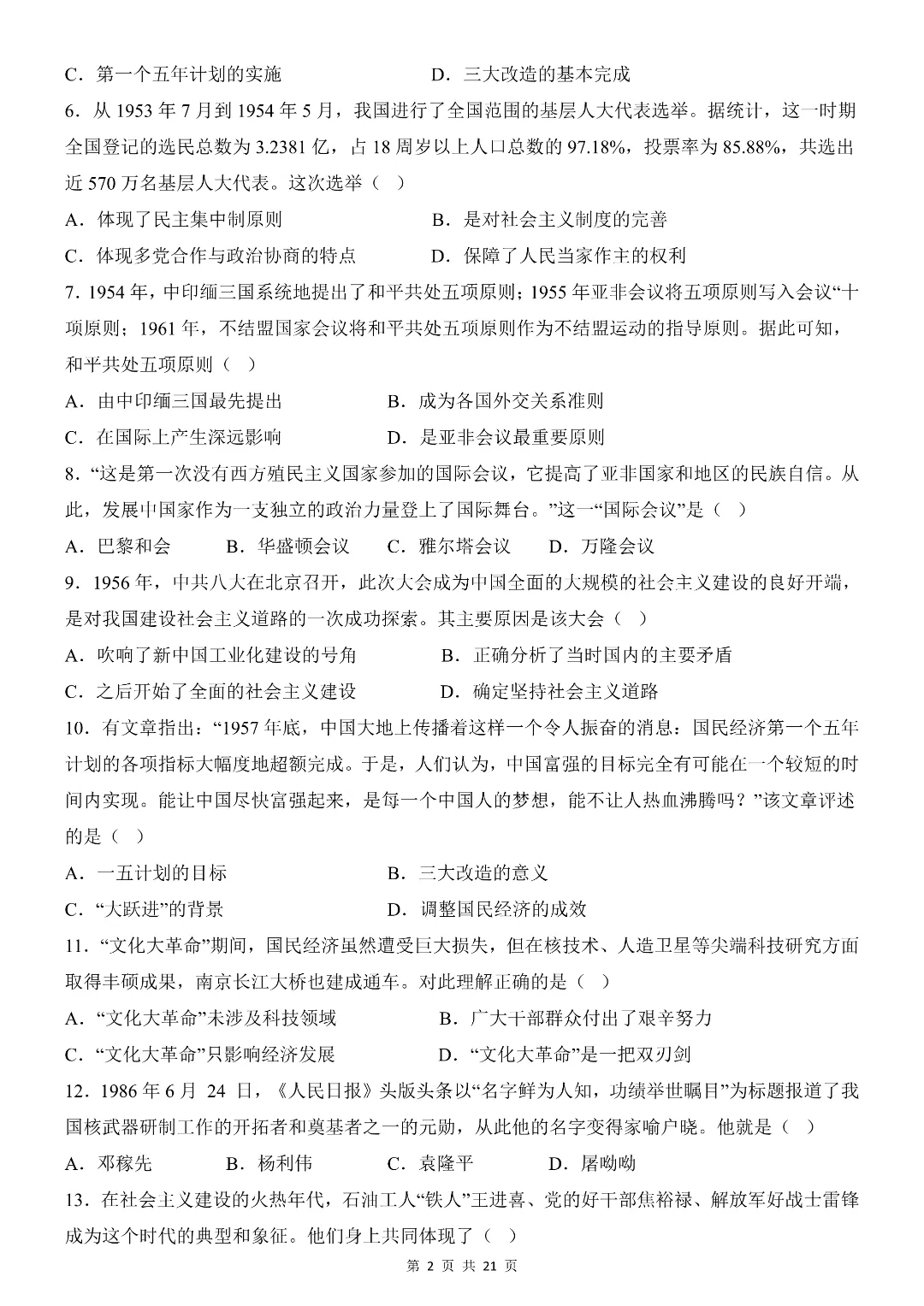 2026年新八年级初二下册统编版历史《期中模拟测试卷》含答案解析‖可打印