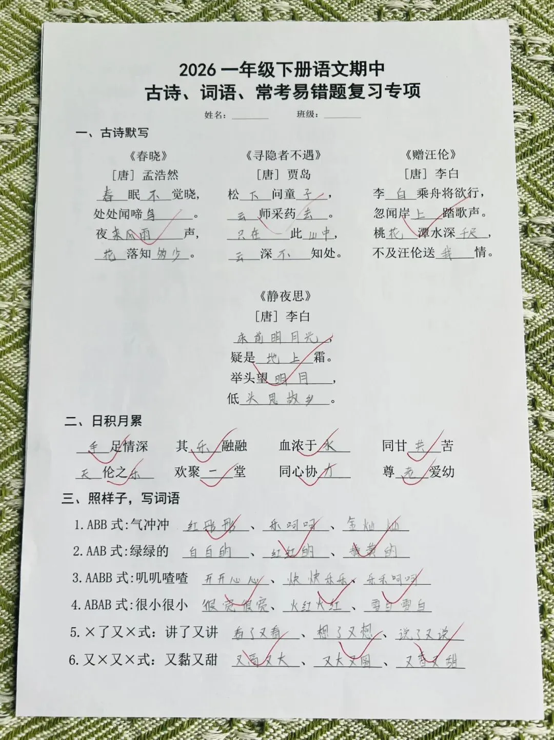 老师发的,一年级下册语文期中复习专项(电子版可打印)