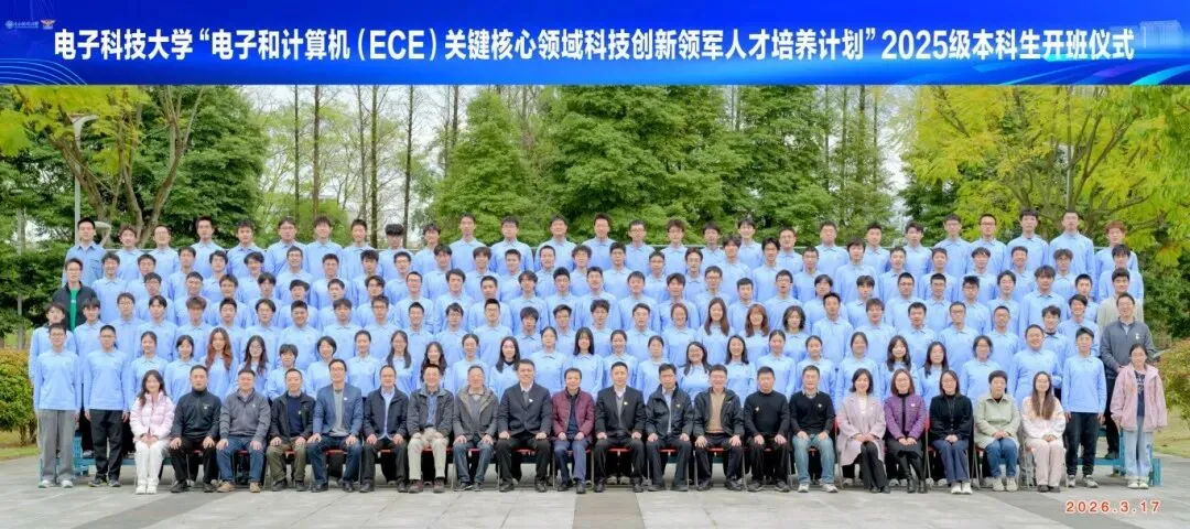 2026年3月17日,电子科技大学“电子和计算机(ECE)关键核心领域科技创新领军人才培养计划”(简称“ECE领军计划”)2025级本科生开班仪式举行,139名经过严格遴选的优秀学子正式集结,标志着学校新工科建设“成电方案”进入2.0升级版实施阶段。