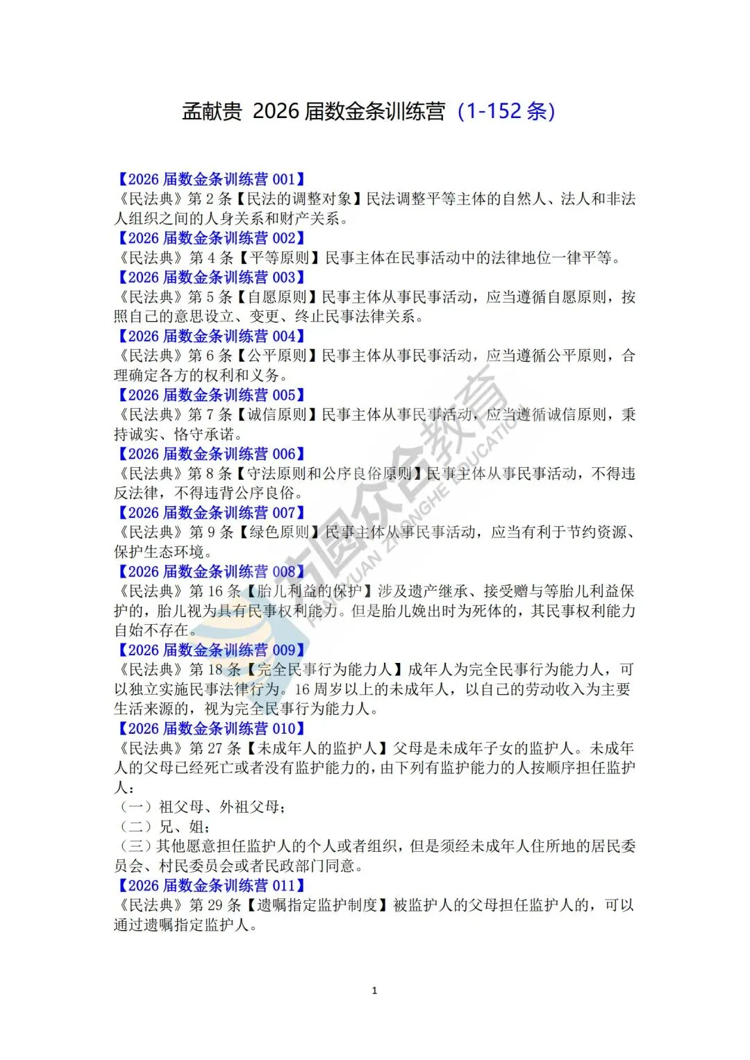 今天,整理了孟献贵老师数金条训练营(1-152)备考干货的汇总,宝子们赶快来领取吧!读法条时,想想你能通过这个法条想到哪些知识点?