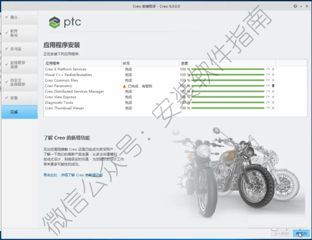 15.安装结束,点【完成】,可忽略“有警告”提醒,这里一般都是硬件不完全符号要求,不影响建模模块使用。