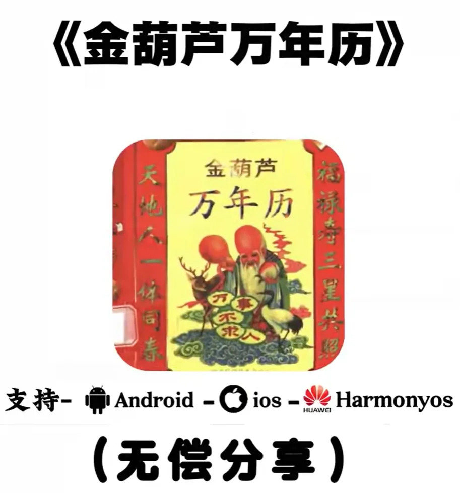 金葫芦万年历是一款融合传统吉祥文化与现代实用功能的优质日历工具。”葫芦” 谐音 “福禄”,承载着福运、禄运的美好寓意,外观设计精巧雅致,兼具观赏性与实用性。它精准同步公历、农历,完整标注二十四节气、传统节日与法定假日,日期查询一目了然。内置详尽黄历功能,包含每日宜忌、时辰吉凶、天干地支等传统历法信息,为婚嫁、开业、搬家等重要事项提供权威参考。界面简洁清晰,大字体显示,老人也能轻松查看。同时支持温度显示、整点报时、多组闹钟提醒等实用功能,挂墙桌面两用,是居家、办公的理想时光伴侣,让传统历法智慧融入现代生活。