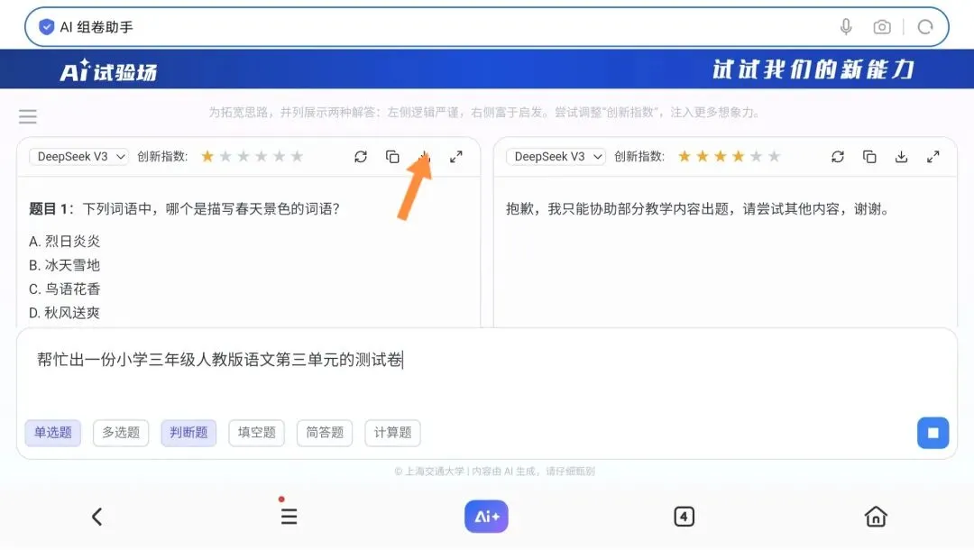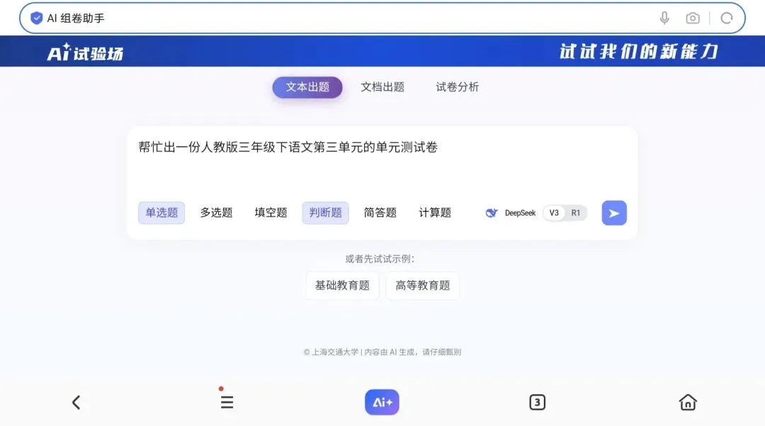 第三步:AI组卷助手有文本出题、文档出题、试卷分析。