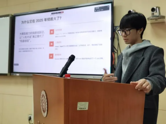 4月9日,第二期AI工具科普讲座在汉院109教室如期开展。本次讲座面向全院师生,北京交通大学硕士研究生孙传昊担任主讲,探讨了一种新型软件开发方式——Vibe Coding(氛围编程)。孙传昊沿着“内涵—功用—发展”的讲述框架,为我院师生提供了一条拥抱人工智能、实现跨学科创新的可行路径。