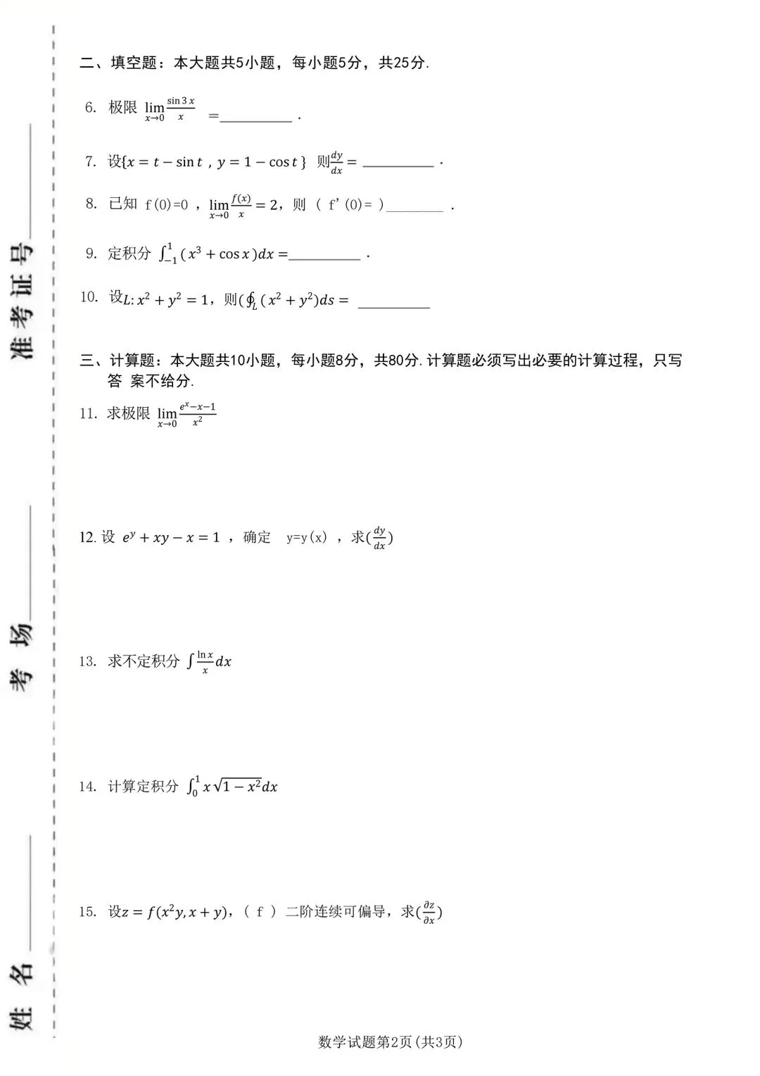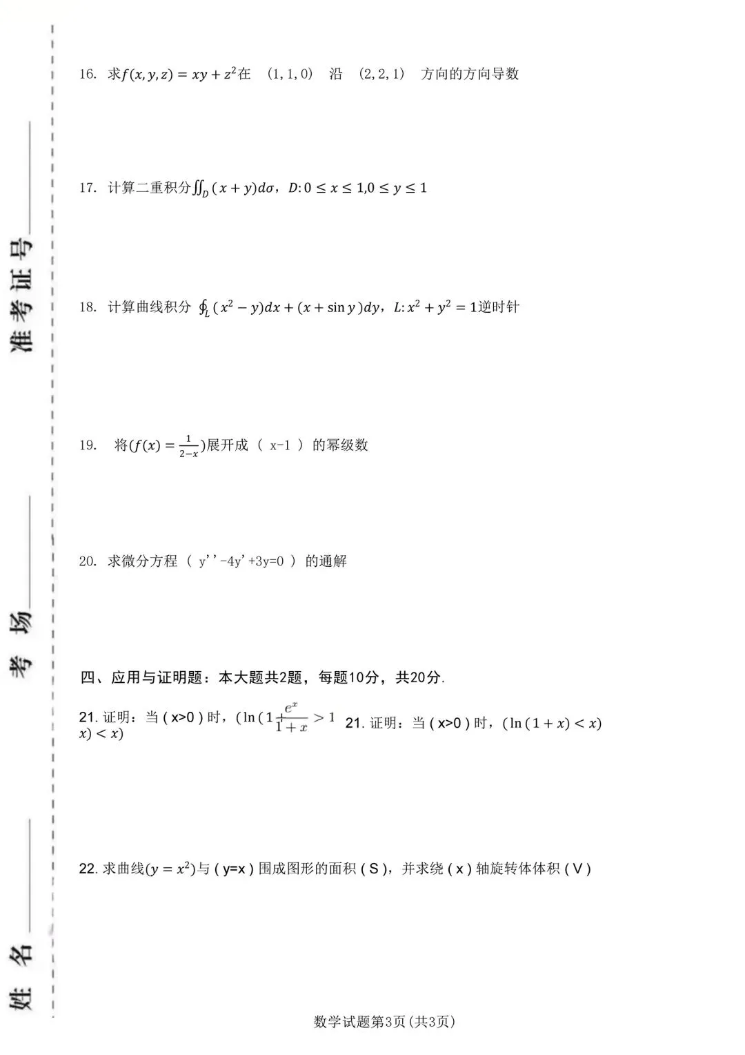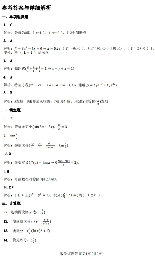 ✅ 聚焦极限、导数、积分、微分方程、级数、向量、曲线积分等核心考点