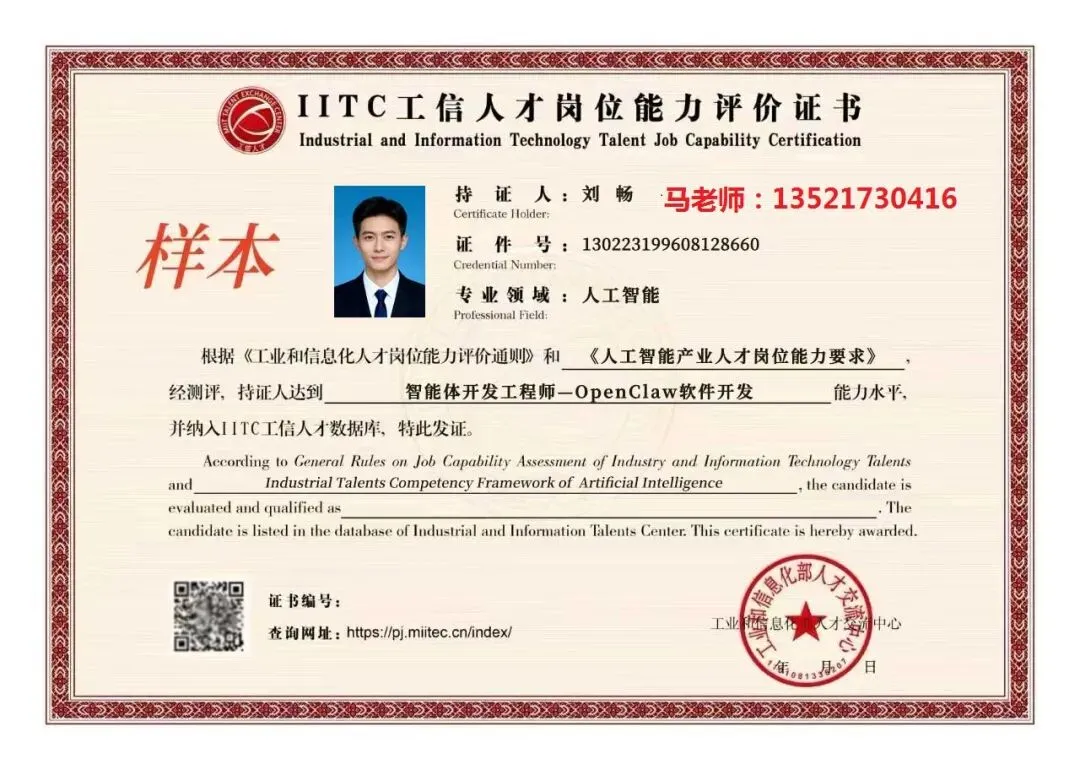 工信人才交流中心IITC工信人才岗位能力评价生成式AI及智能体,人工智能训练师,数据安全评估工程师,数据标注工程师,数据安全管理工程师,CDO首席数据官,AI管理会计师,AI人力资源管理师,智能体开发工程师—OpenClaw软件开发,智能体应用工程师—OpenClaw职场应用,人工智能训练师认证办理,马老师:135-2173-0416