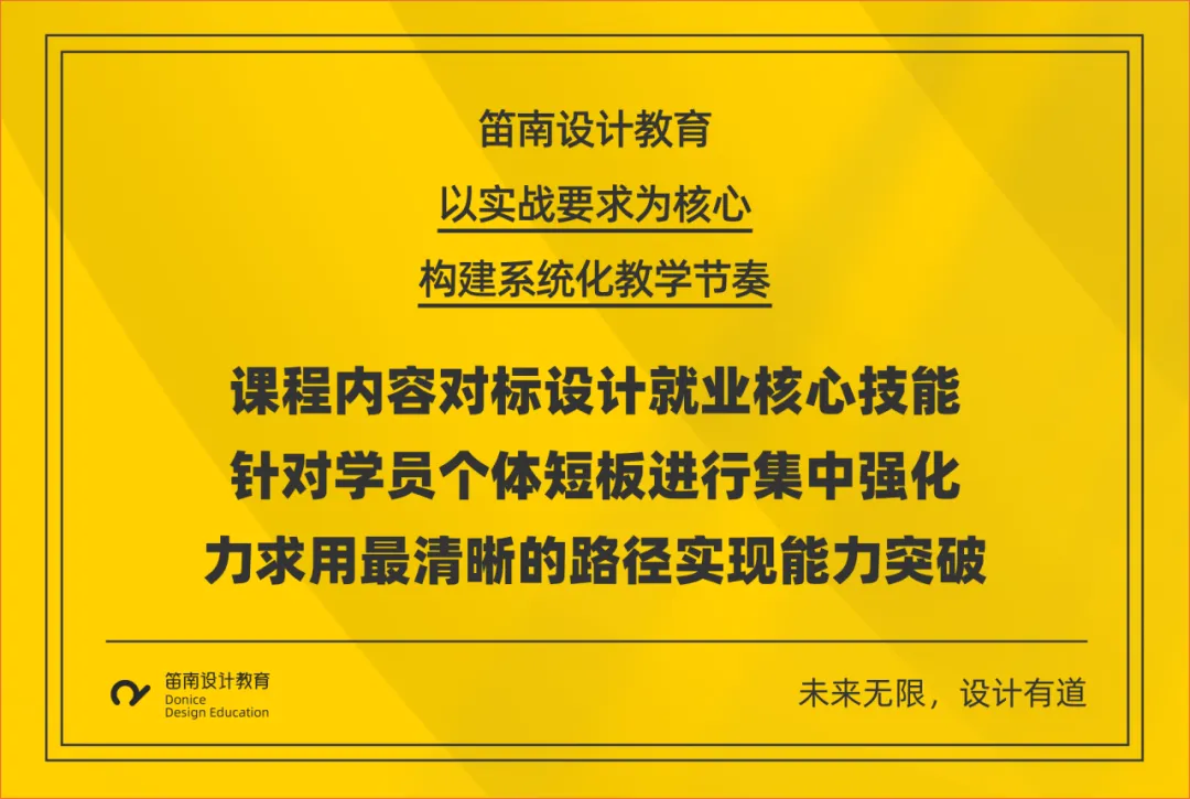 笛南从”理论及操作讲解”升级为”企业需要什么就学什么”,将设计理念、商业逻辑、效果呈现等全流程融入教学,让你在学习中积累的不只是作品,更是可复用的设计项目经验与设计思维,让所学高效转化为职场竞争力。