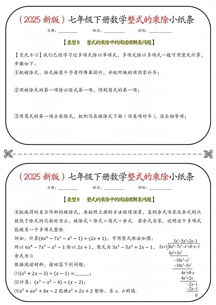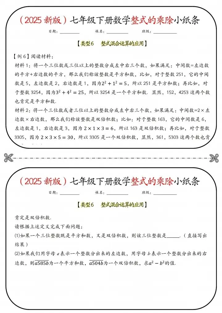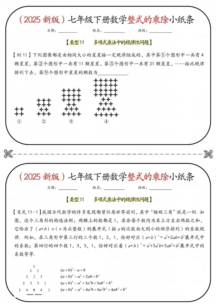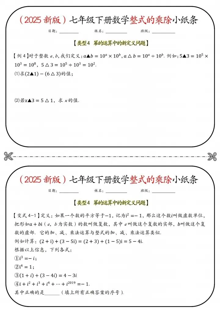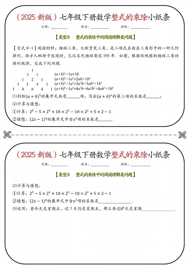 今日分享26新七年级下册数学北师版整式的乘除小纸条(附答案)完整电子版可打印!高清可打印,每日轻量练习,拒绝无效刷题,用系统化资料筑牢学科基础,让假期成为提升的黄金期,开学轻松领跑。