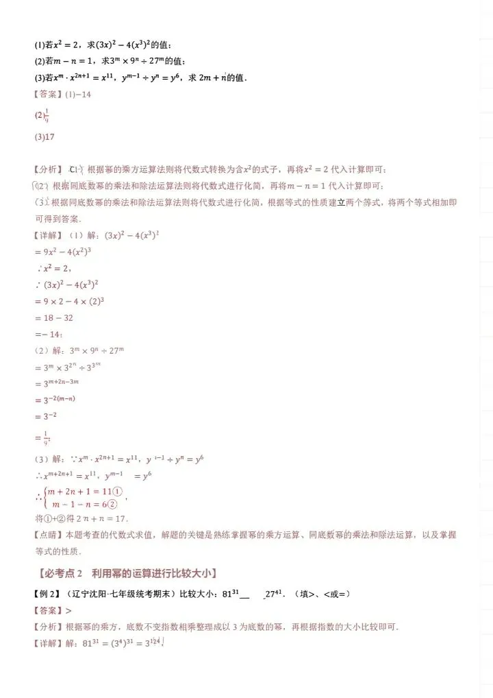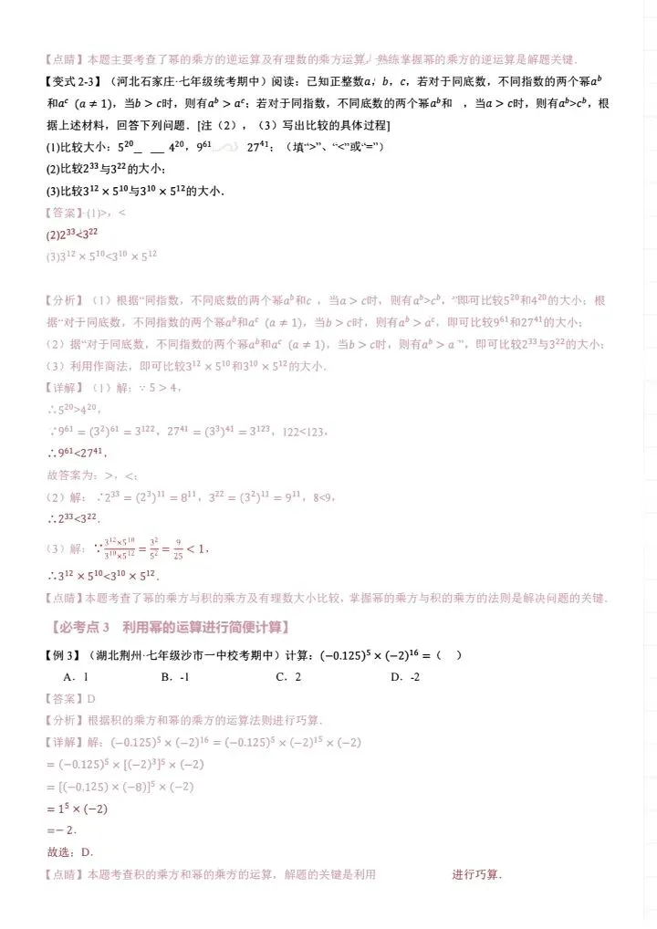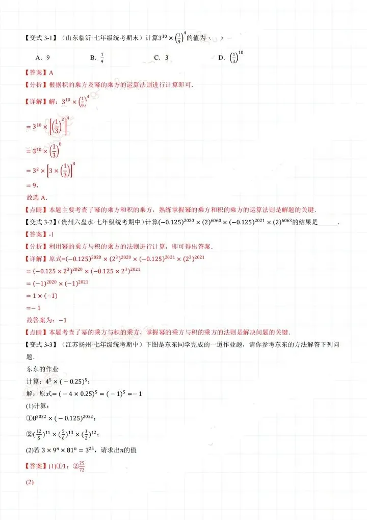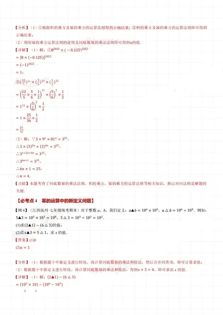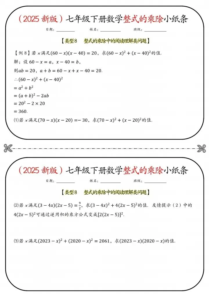 26新七年级下册数学北师版整式的乘除小纸条(附答案)完整电子版可打印