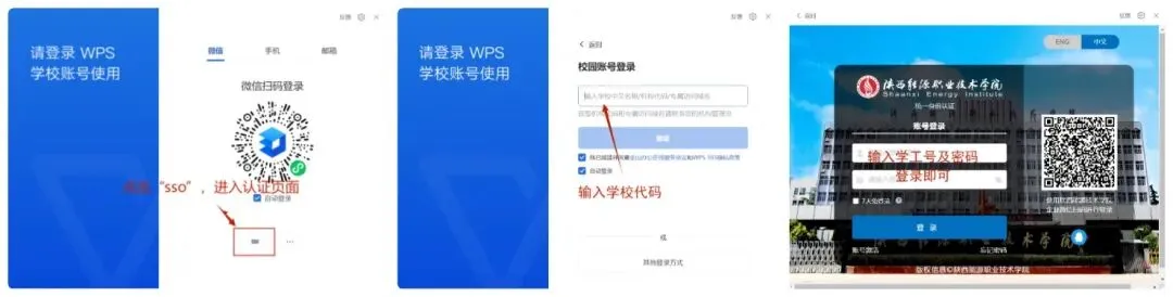 选择SSO登录,输入企业代码“sxny”,点击登录后自动跳转至学校官方登录页面,使用工号和密码登录。