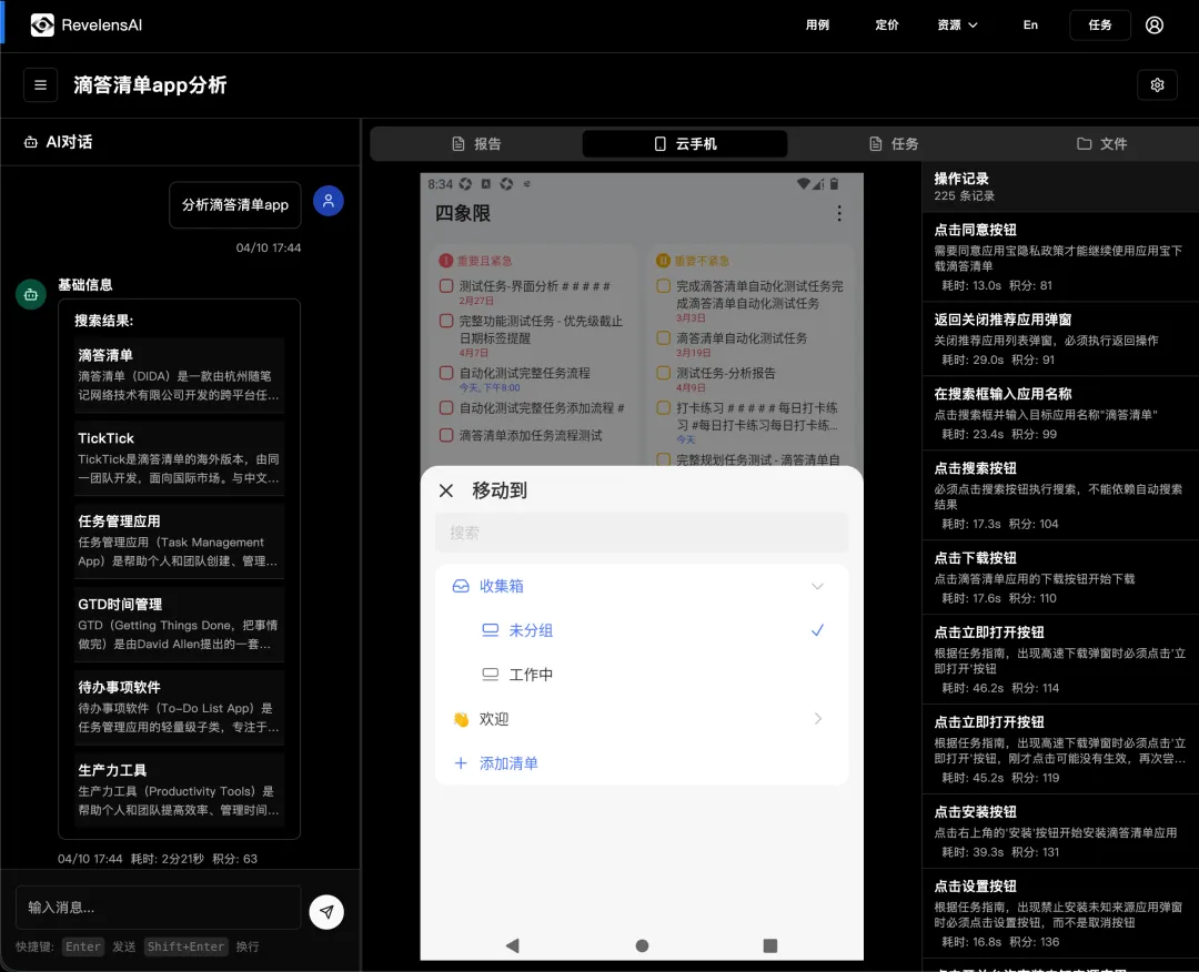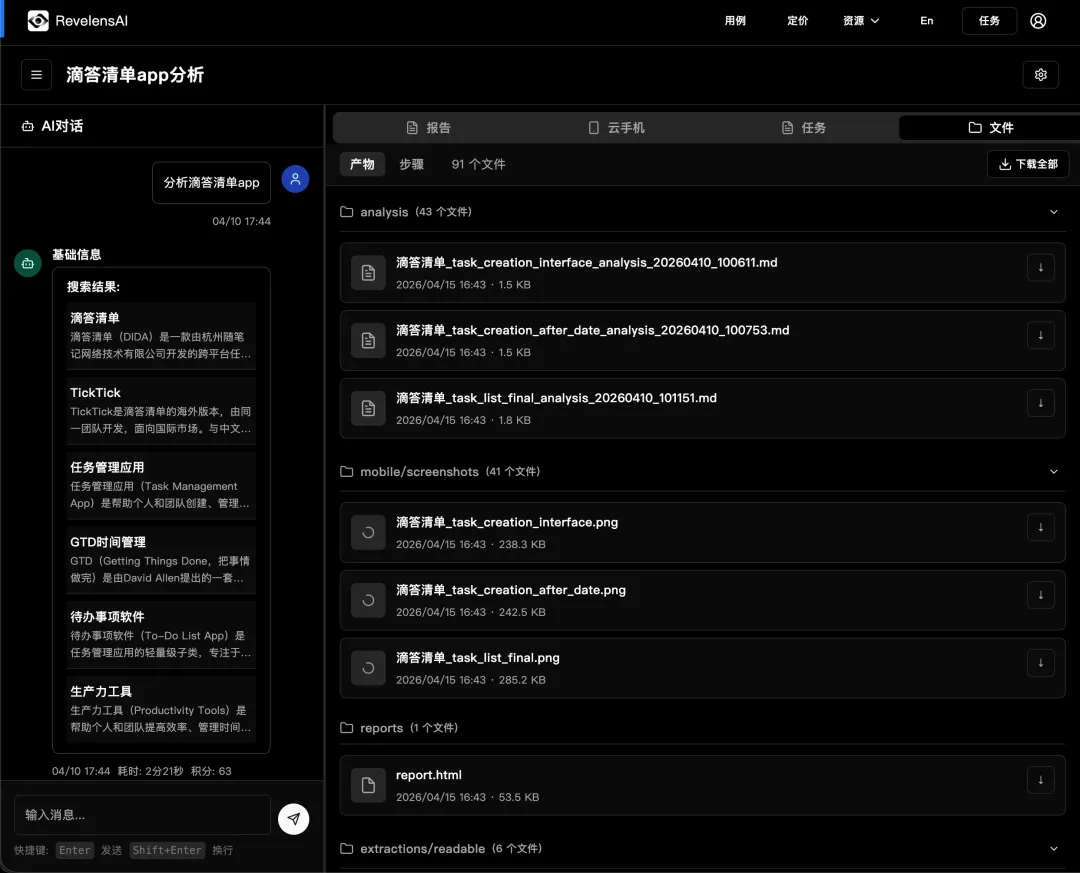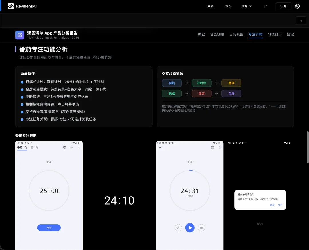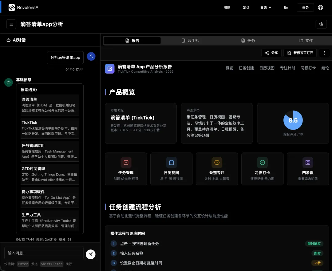 用 RevelensAI 分析了一下滴答清单 APP,打开 RevelensAI 的“用例”就可以看到完整的报告。